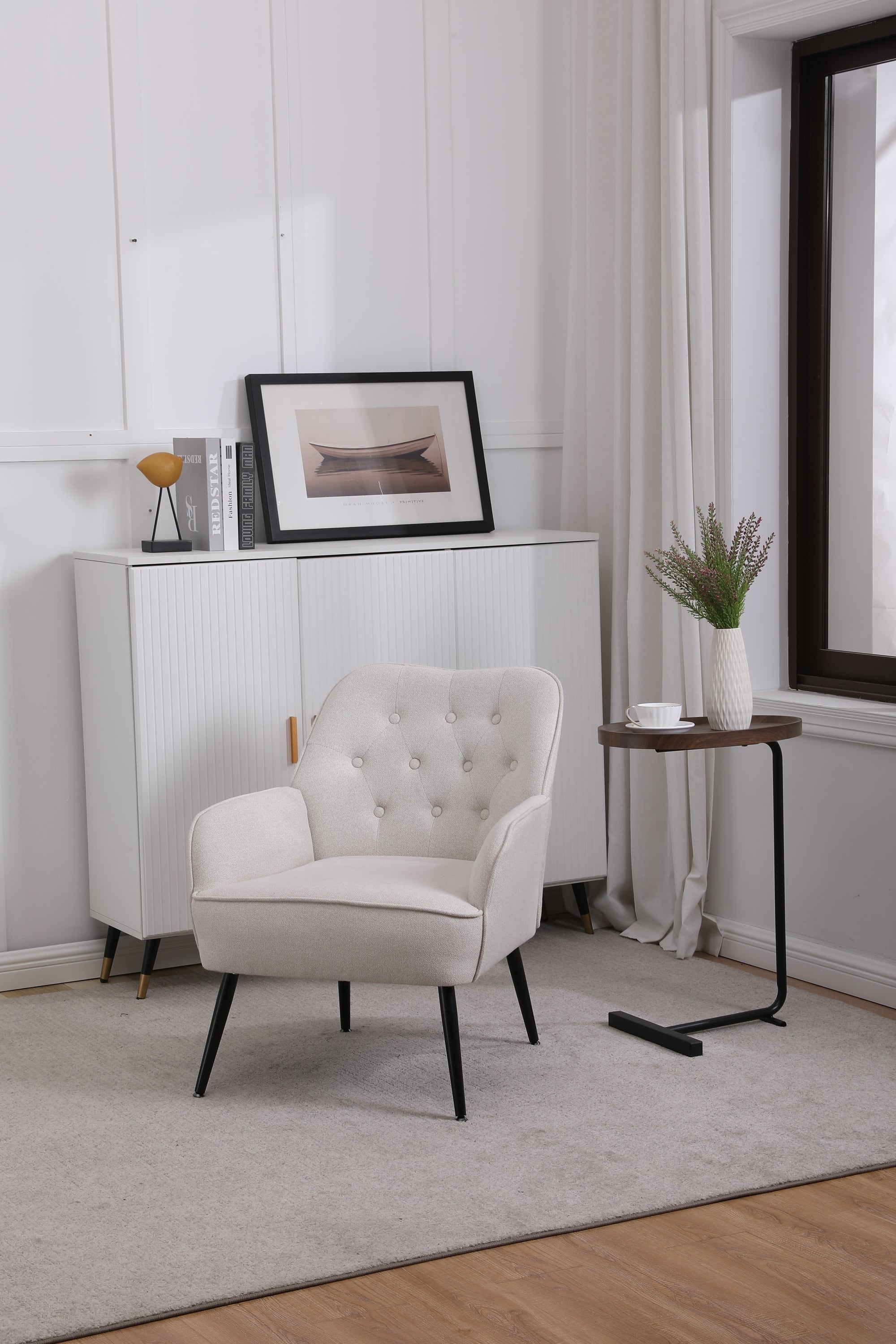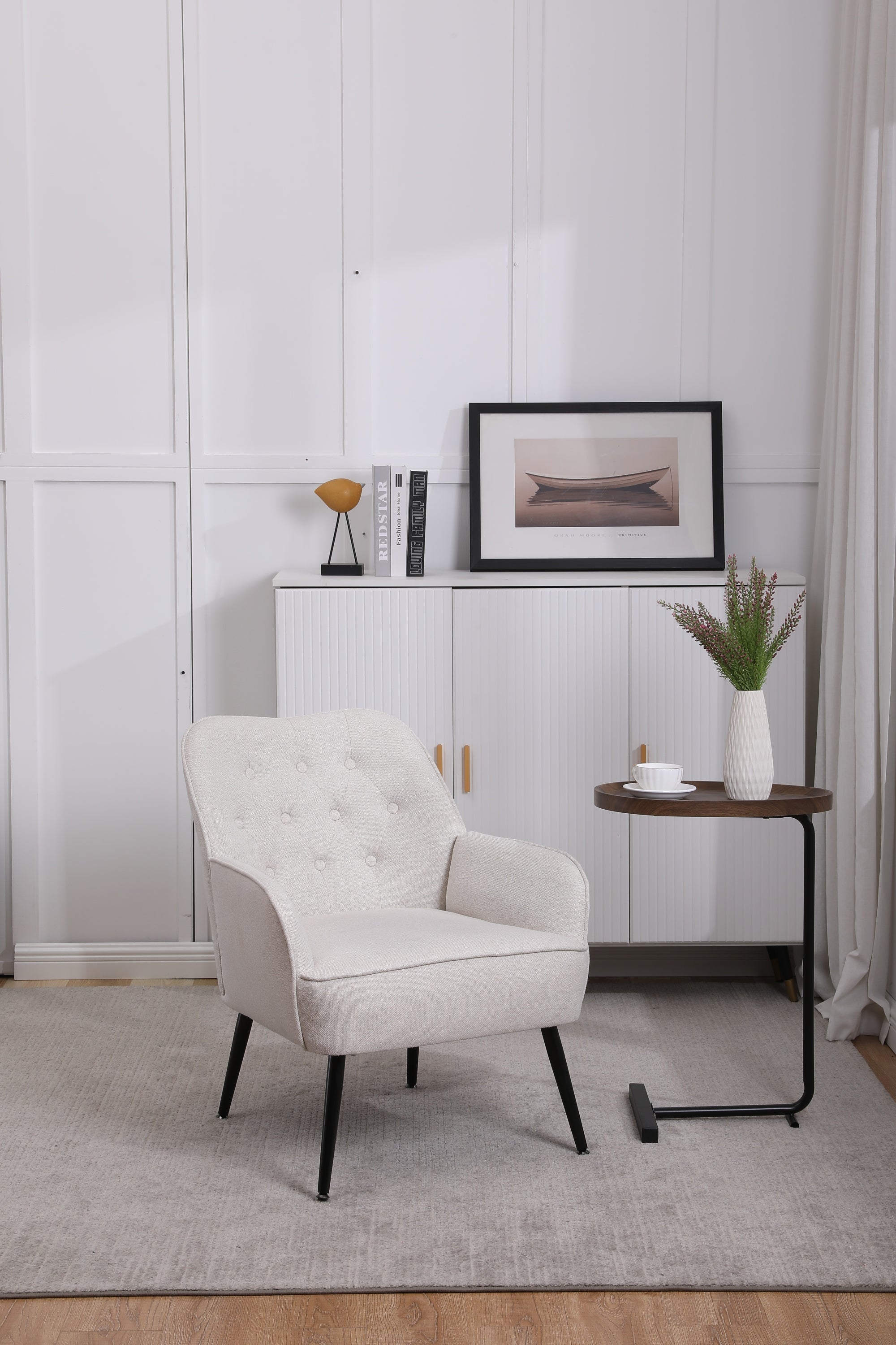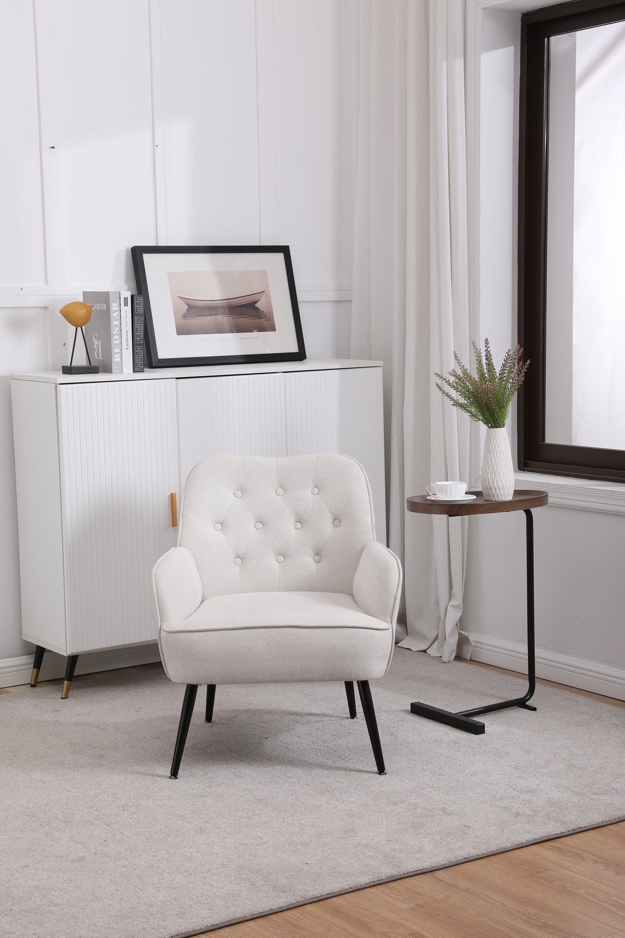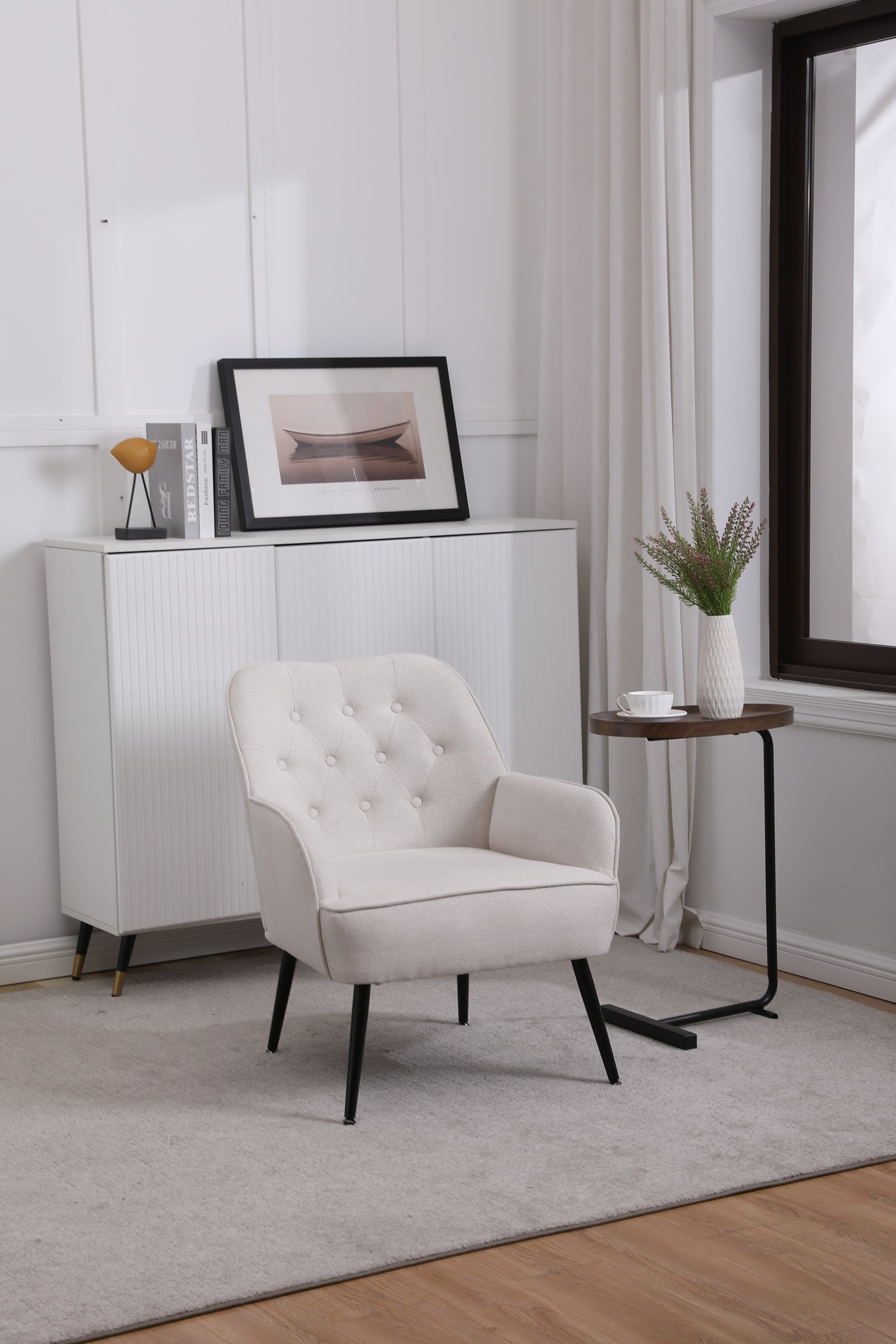 Modern Mid-Century Chair, Linen Sherpa Armchair for Living Room, Bedroom, Office, Easy Assembly,Beige