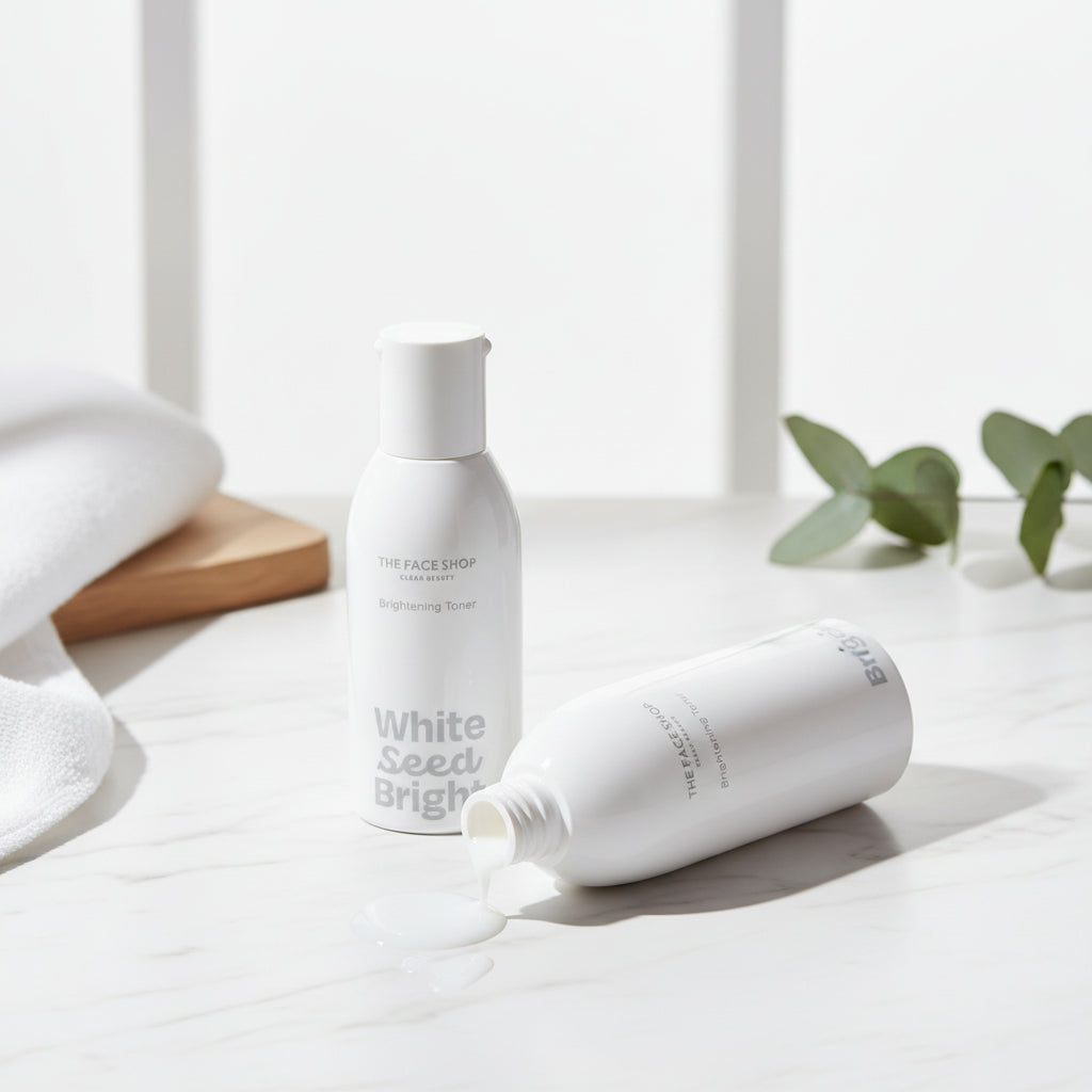 • ✨ THE FACE SHOP White Seed Brightening Toner: Achieve a luminous, crystal-clear complexion with this essential K-Beauty brightening toner. It preps the skin while actively working to lighten dark spots.