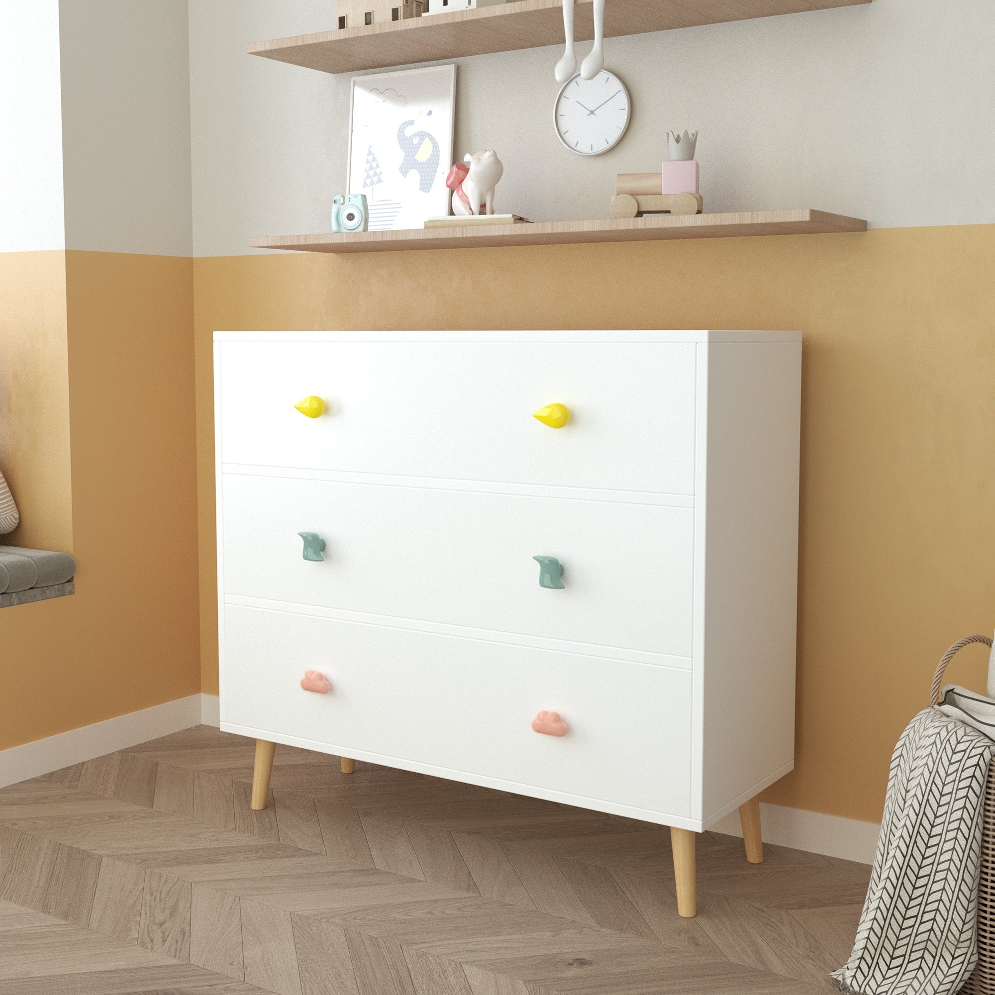 - Crafted with Love, Care, & : With Euro glides & cartoon pulls, this 3-drawer chest dresser ensures smooth access to baby essentials. Easy-to-follow instructions simplify setup so that you can create special moments from day one.
