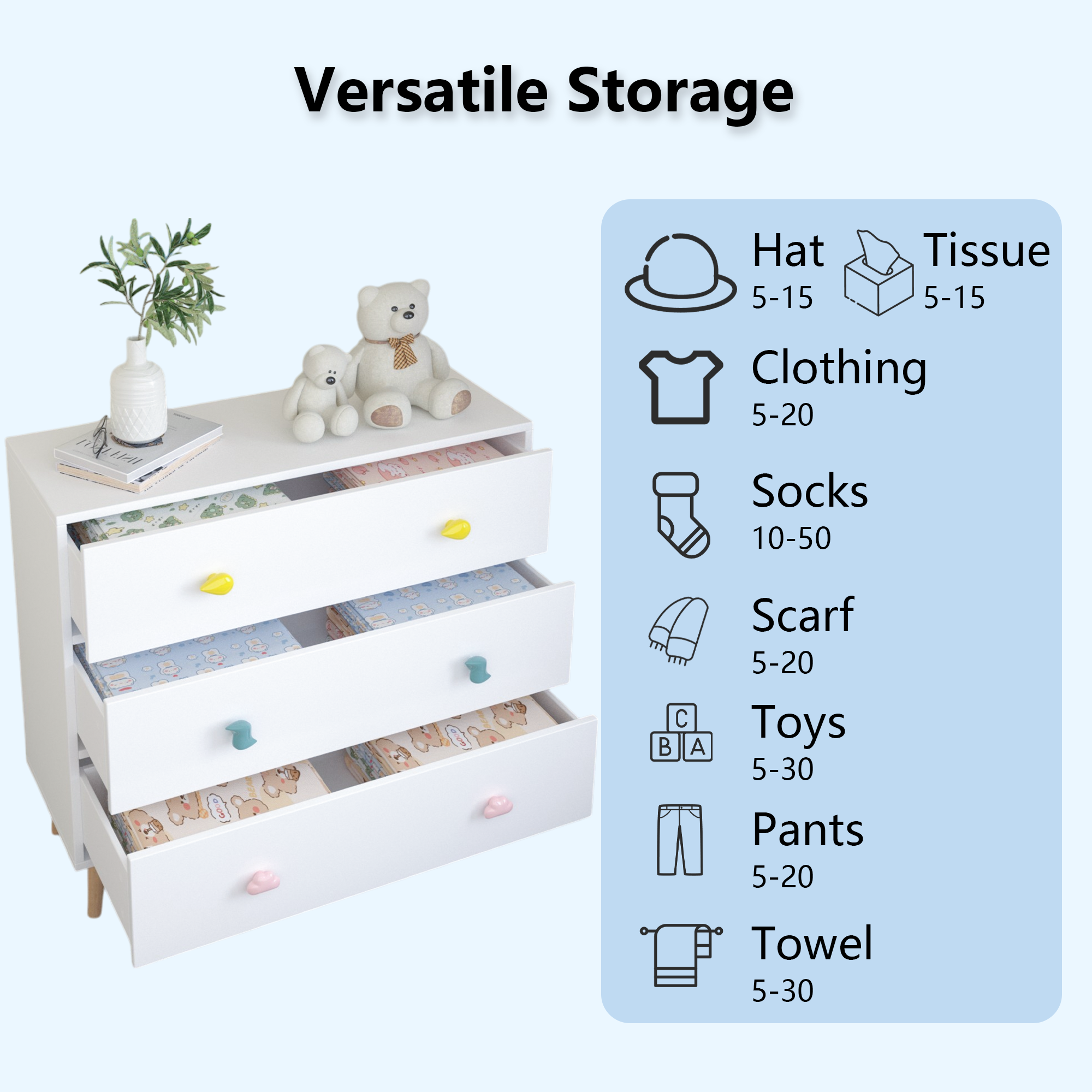 - Versatile Dresser: Beyond being a dresser for kids' bedrooms for girls or boys, the timeless of this dresser complements any room, whether used as a nightstand, side table, or paired with other bedroom or living room furniture.