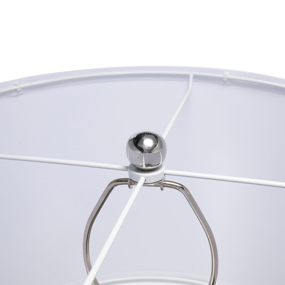 Introduce an element of modern luxury and elegant illumination with this stunning White and Silver Leaf Table Lamp. Standing at an impressive 29.3 inches tall (D15"), this substantial lamp features a durable body finished in sophisticated Silver Leaf detailing against a bright white background. The heavy, stable base is crafted from genuine Marble, ensuring high-end stability and style. Topped with a classic White Drum Shade, it provides soft, ambient light perfect for the Bedroom, Living Room, or Foyer. Note that Lamp Shade Assembly is Required, but the resulting look is worth the simple setup.