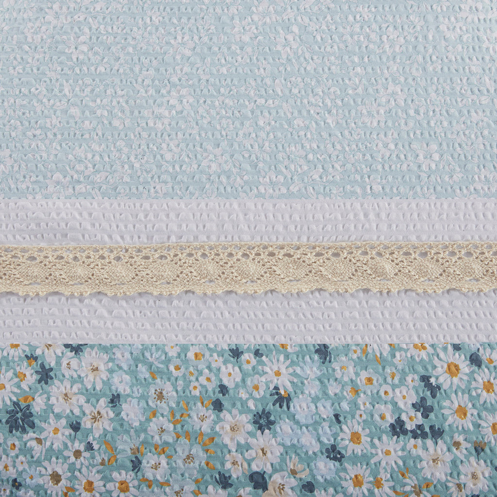 - Printed seersucker microfiber polyester; 100% polyester comforter and pillow filling