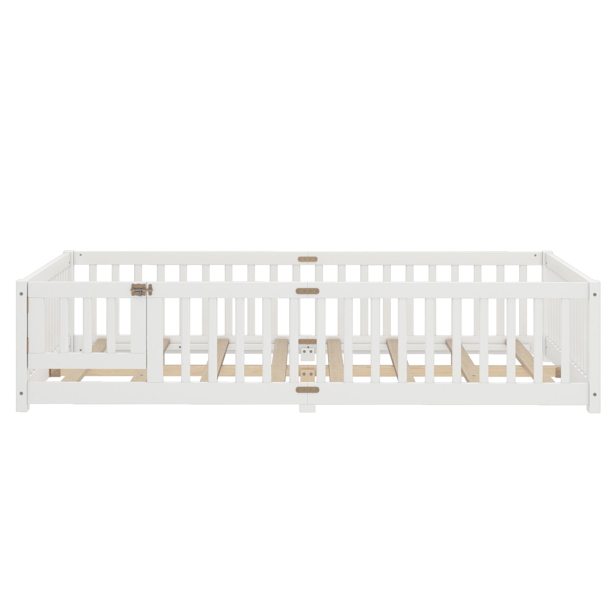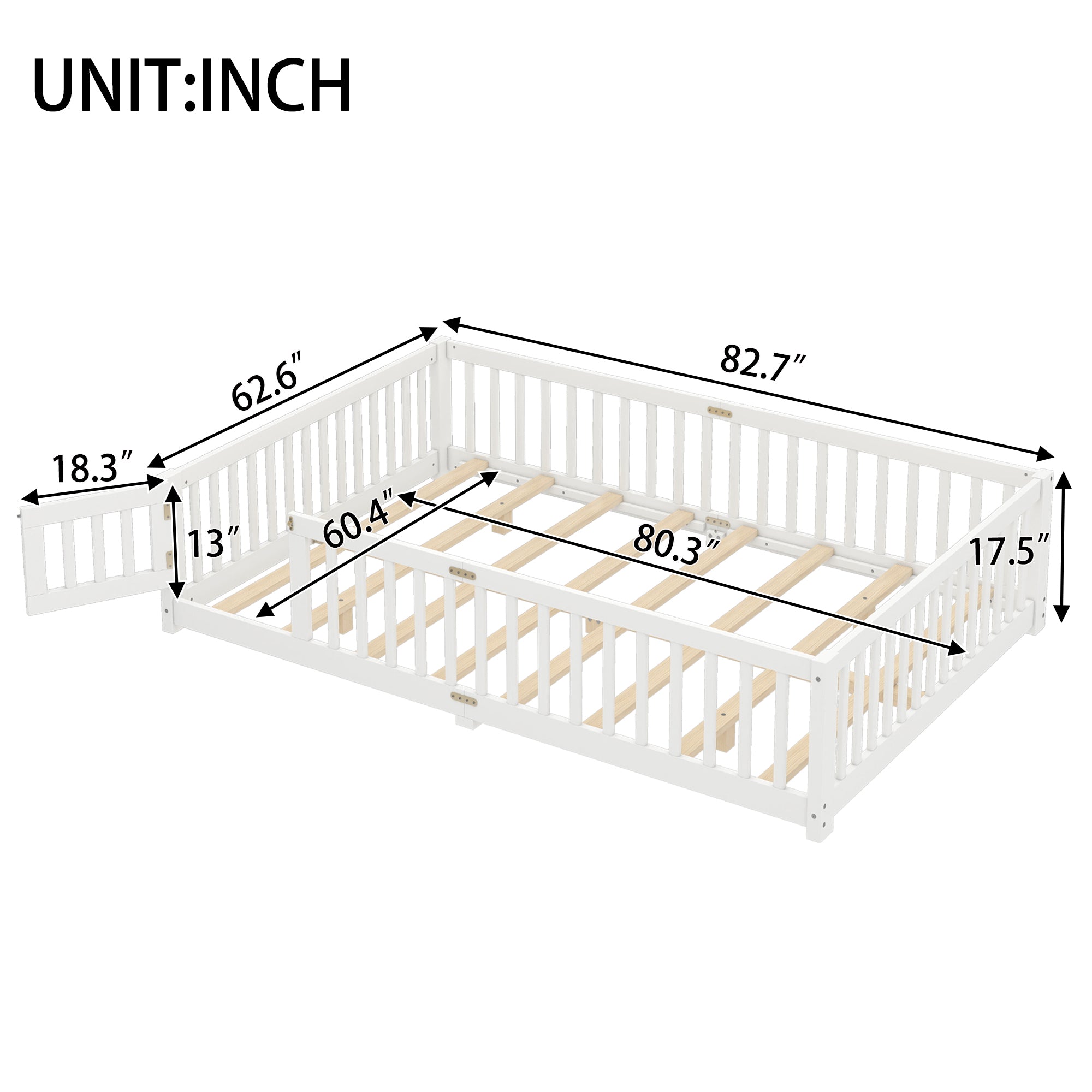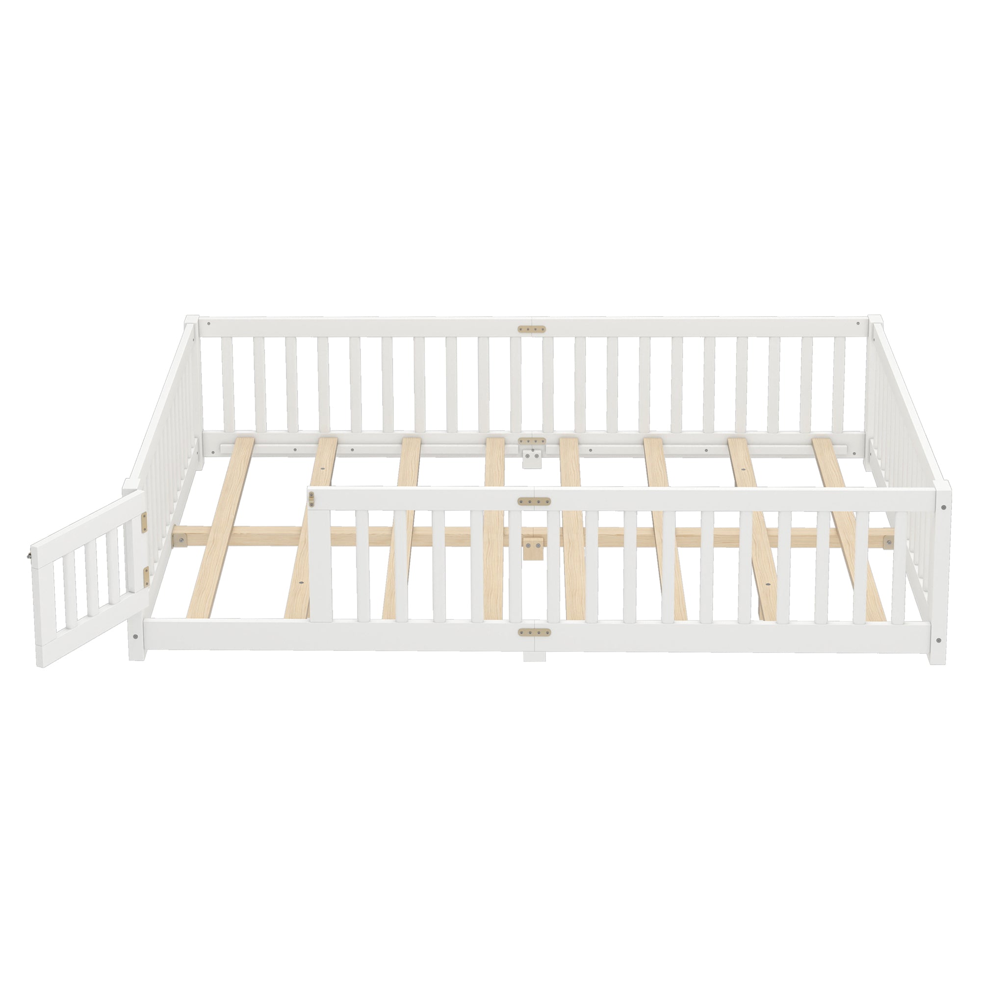 Queen Size Bed Floor Bed with Safety Guardrails and Door for Kids, White(Old SKU: W1580P154628 )