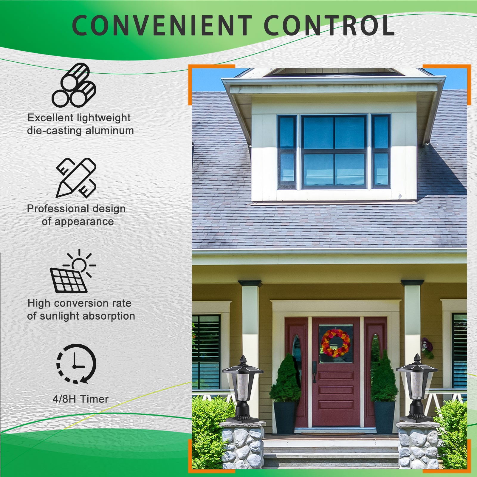 • Solar light is easy to install, solar power supply, requires no wiring.