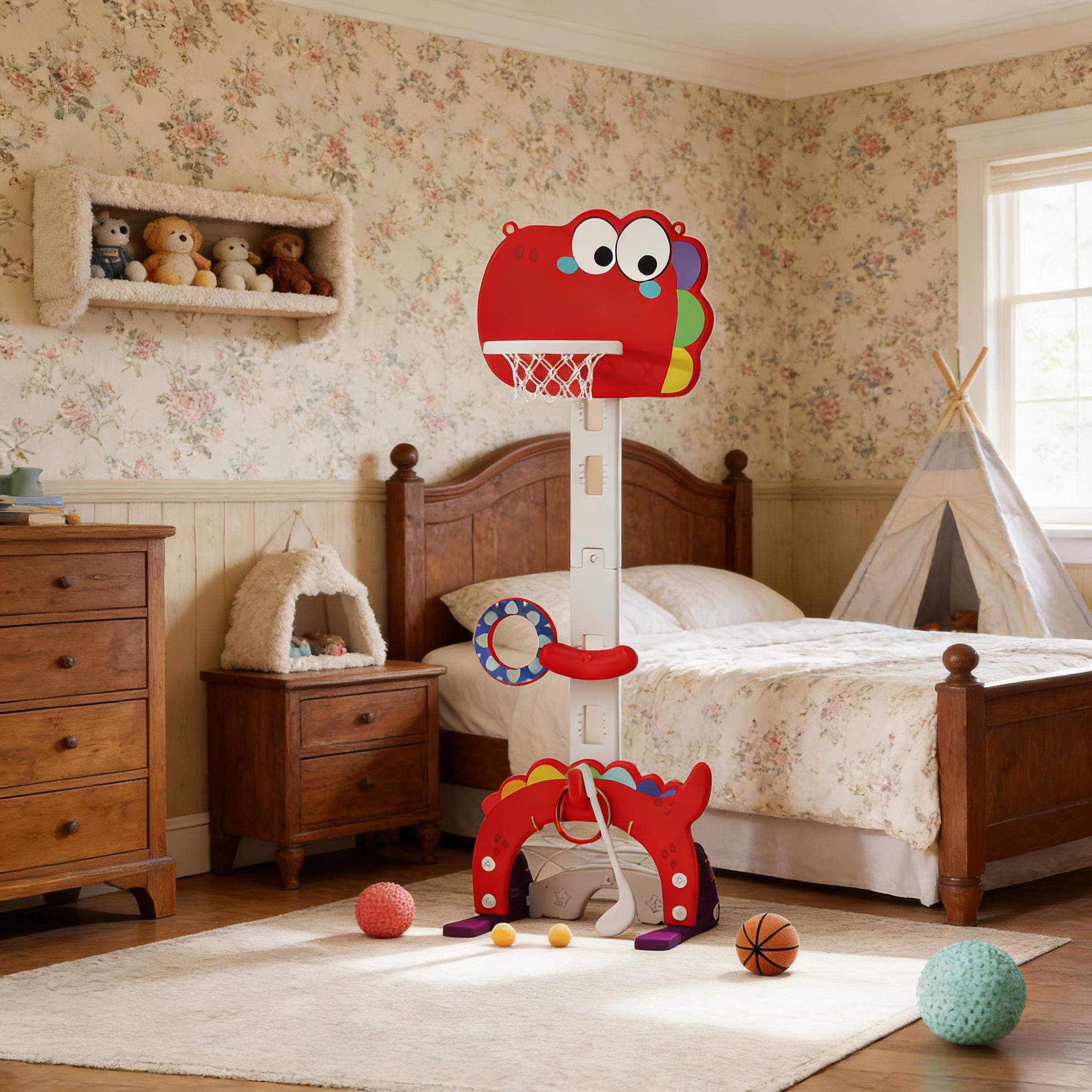 - - Developing Baby Skills: This dinosaur-themed toddler basketball hoop, through fun activities, not only enhances your child's coordination and physical strength but also develops social skills through interactive play.