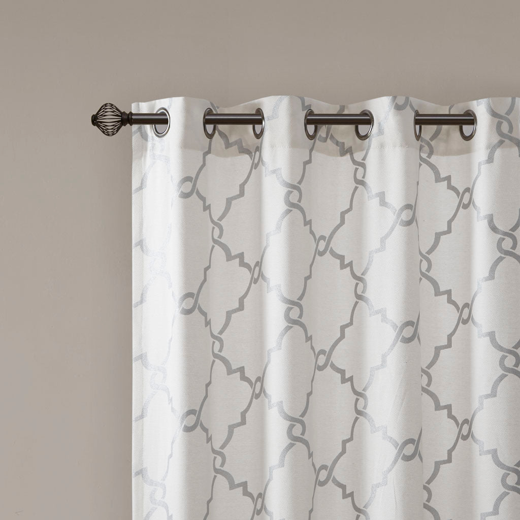 - Scroll geometric fretwork print design window curtain panel in grommet top
