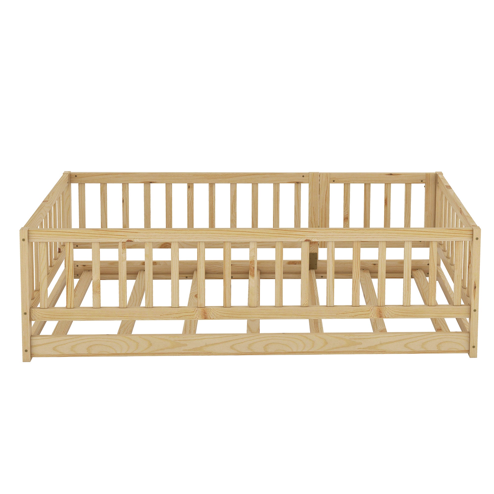 - [Floor Bed with Fence and Door]The four guardrail of the montessori floor bed are not truncated, so our twin floor bed is more stable than a regular floor bed. There is a small door that can be opened and closed, which increases the interest of the montessori floor bed and creates a more safety sleeping space. Fence Hight: 21.5'. Note: The Door is removable.