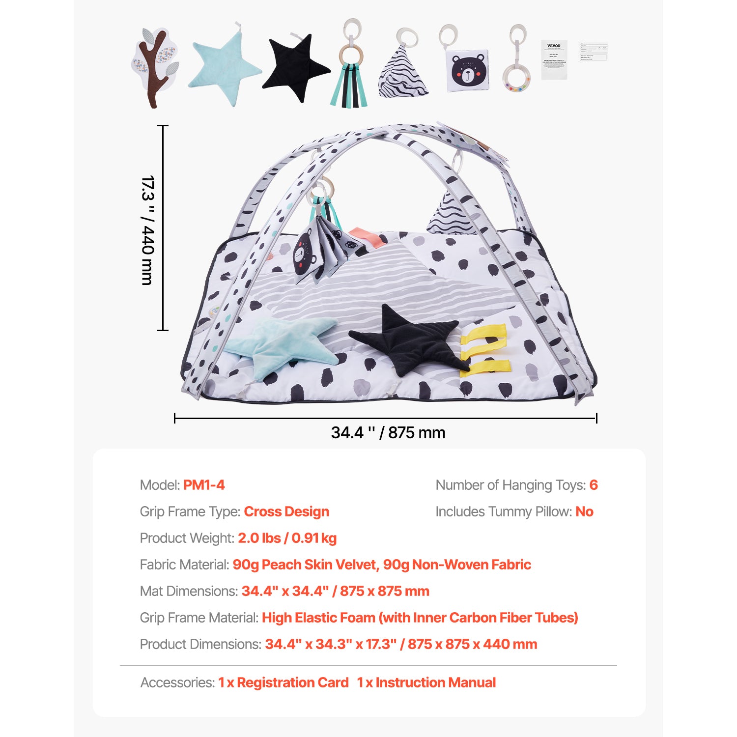 - Safe and Soft: Crafted from non-toxic, BPA-free materials, this infant play mat and activity gym mat is durable, resistant to baby's biting and not easy to damage. The soft peach skin velvet and non-woven fabric ensure a cozy touch, offering a secure play area for babies and peace of mind for parents.