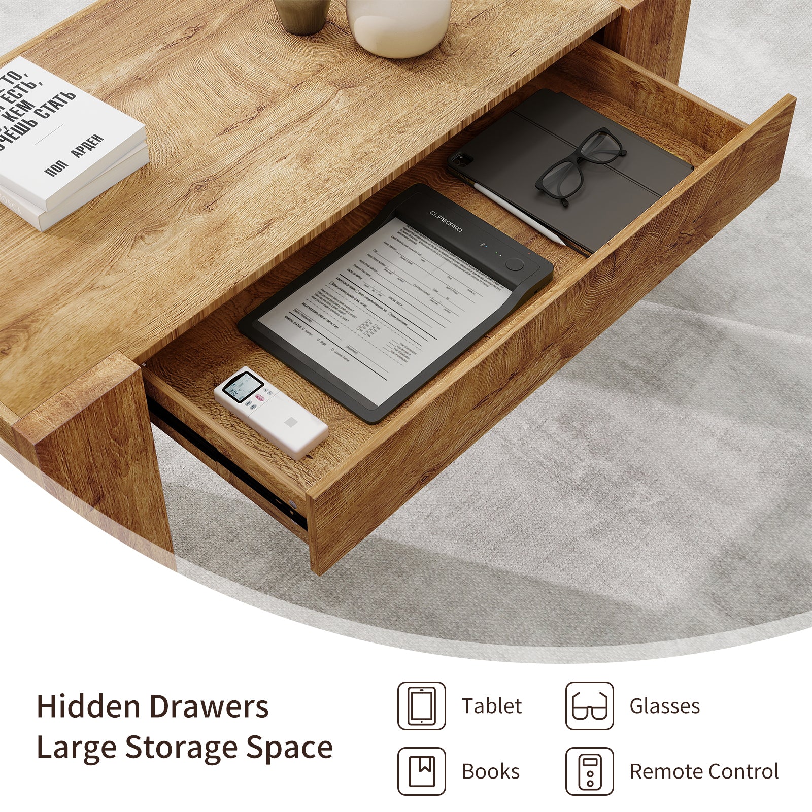 - 📖Large-Capacity Hidden Drawers: This rectangle wooden center table features large-capacity hidden drawers, providing ample storage space for various small items. Remote controls, electronic accessories, magazines, and other easily scattered items can be neatly stored, keeping the desktop and surrounding environment tidy. It's both practical and aesthetically pleasing, creating a cleaner and more organized home environment.