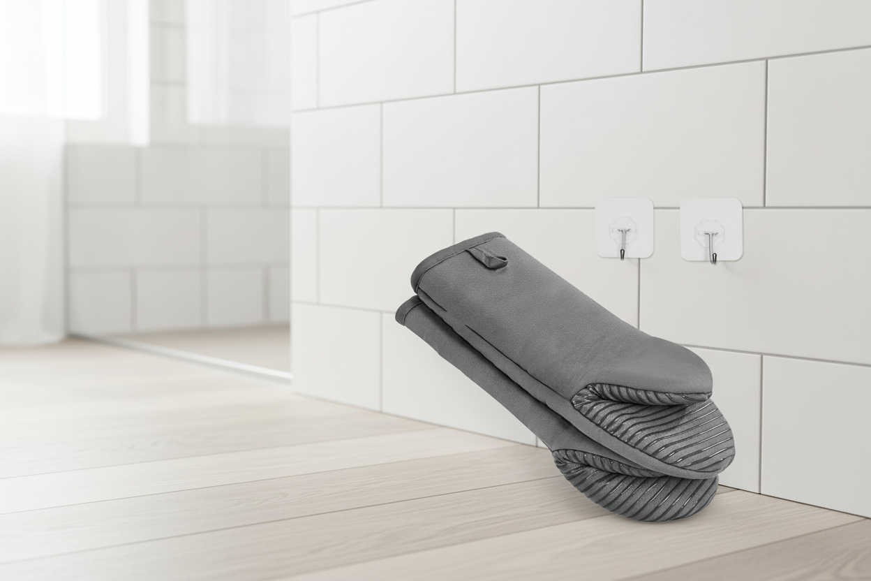 Convenient No-Marks Hooks: Included are two specialized hooks for easy, drill-free storage. This professional-grade addition ensures your kitchen remains organized and tidy, keeping your mitts within arm's reach while maintaining a high-shine, clean aesthetic.