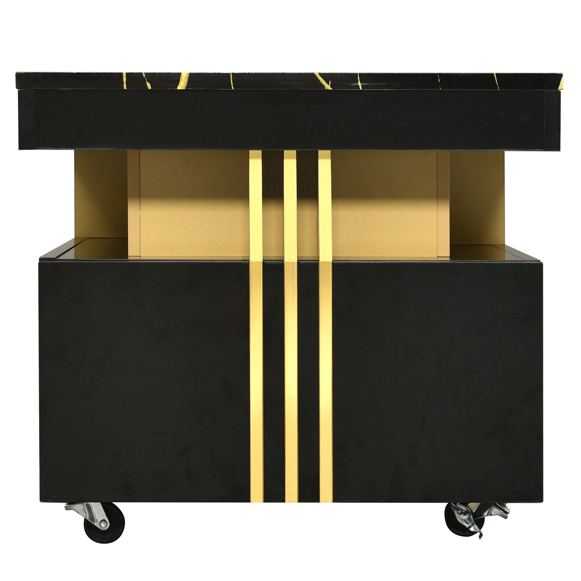 Black Faux Marble Contemporary Coffee Table with Gold Accents & Caster Wheels