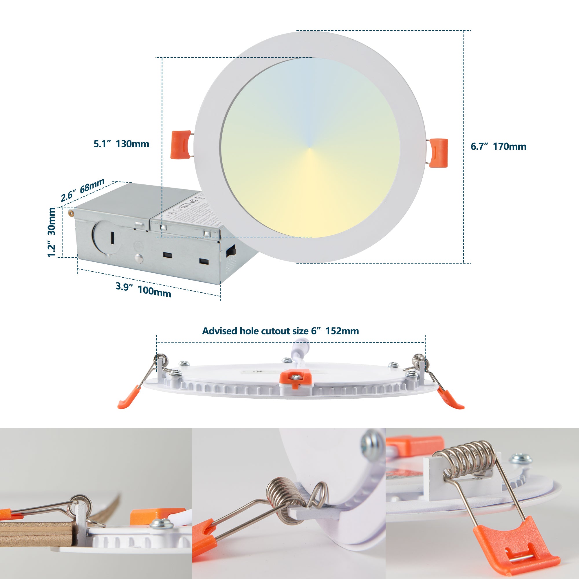 - Built in driver and protective box: Equipped with built-in driver and protective box, it meets various safety standards, ensuring safety and stability, and is suitable for indoor ceiling, suspended ceiling and other installations.