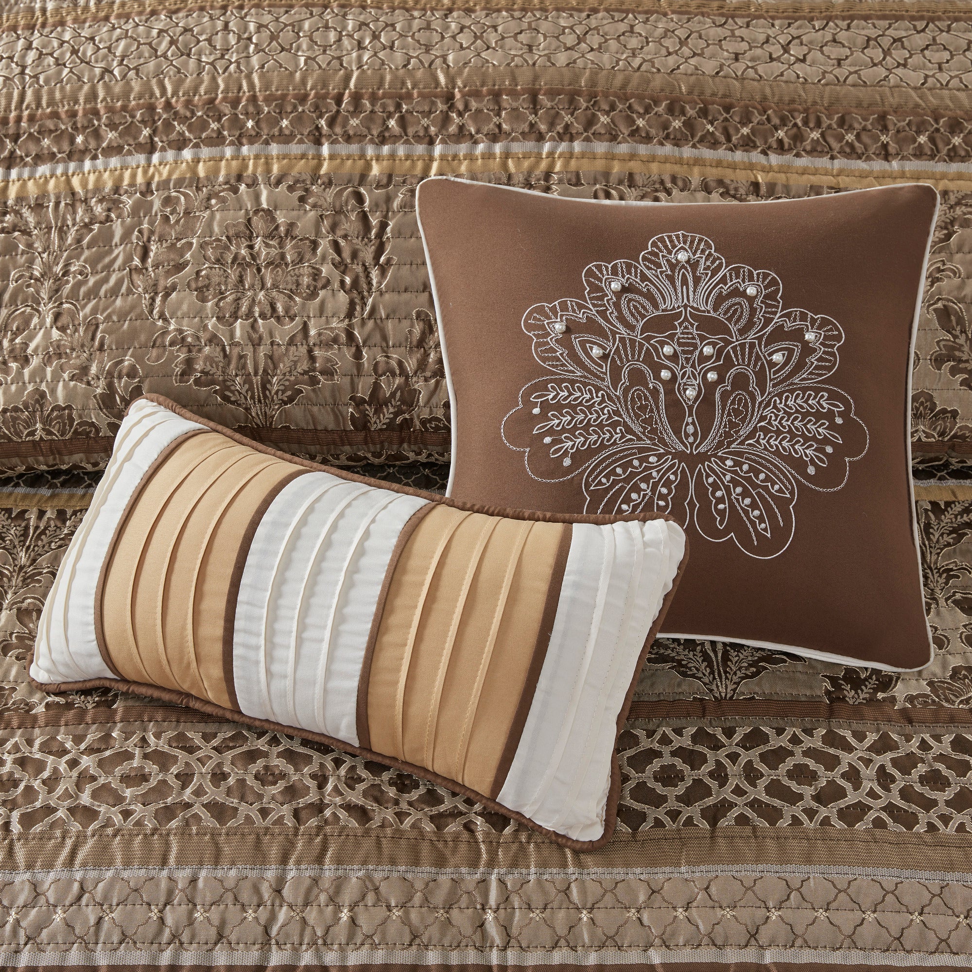 6 Piece Jacquard Quilt Set with Throw Pillows Brown/Gold Full/Queen