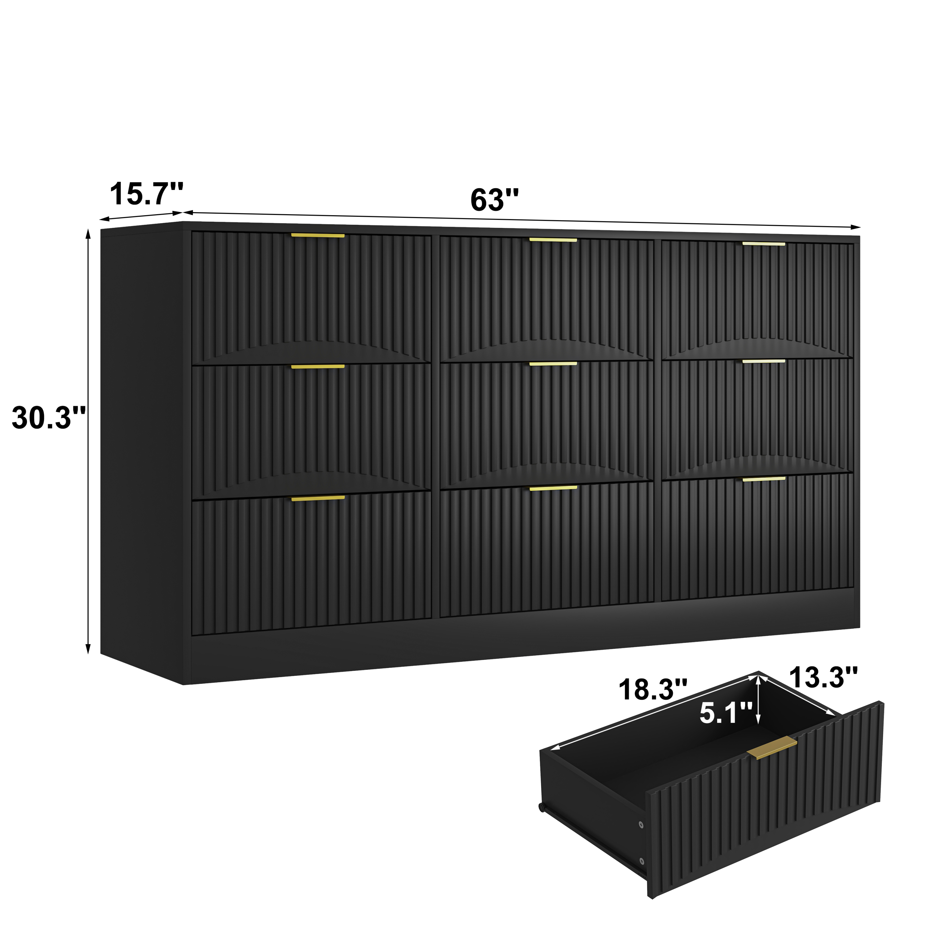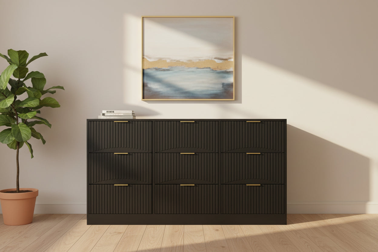 Redefine your home organization with the Modern 9-Drawer Dresser with Wavy Fronts. This 63-inch masterpiece is meticulously engineered to provide a professional, "cloud-like" aesthetic to your bedroom or living space. Featuring clinical-grade wavy panel detailing and a pristine black finish, it offers a "wobble-free" sanctuary for your belongings. Designed for heavy-duty daily use, its nine deep drawers ensure your environment remains energized and "dirt-free."