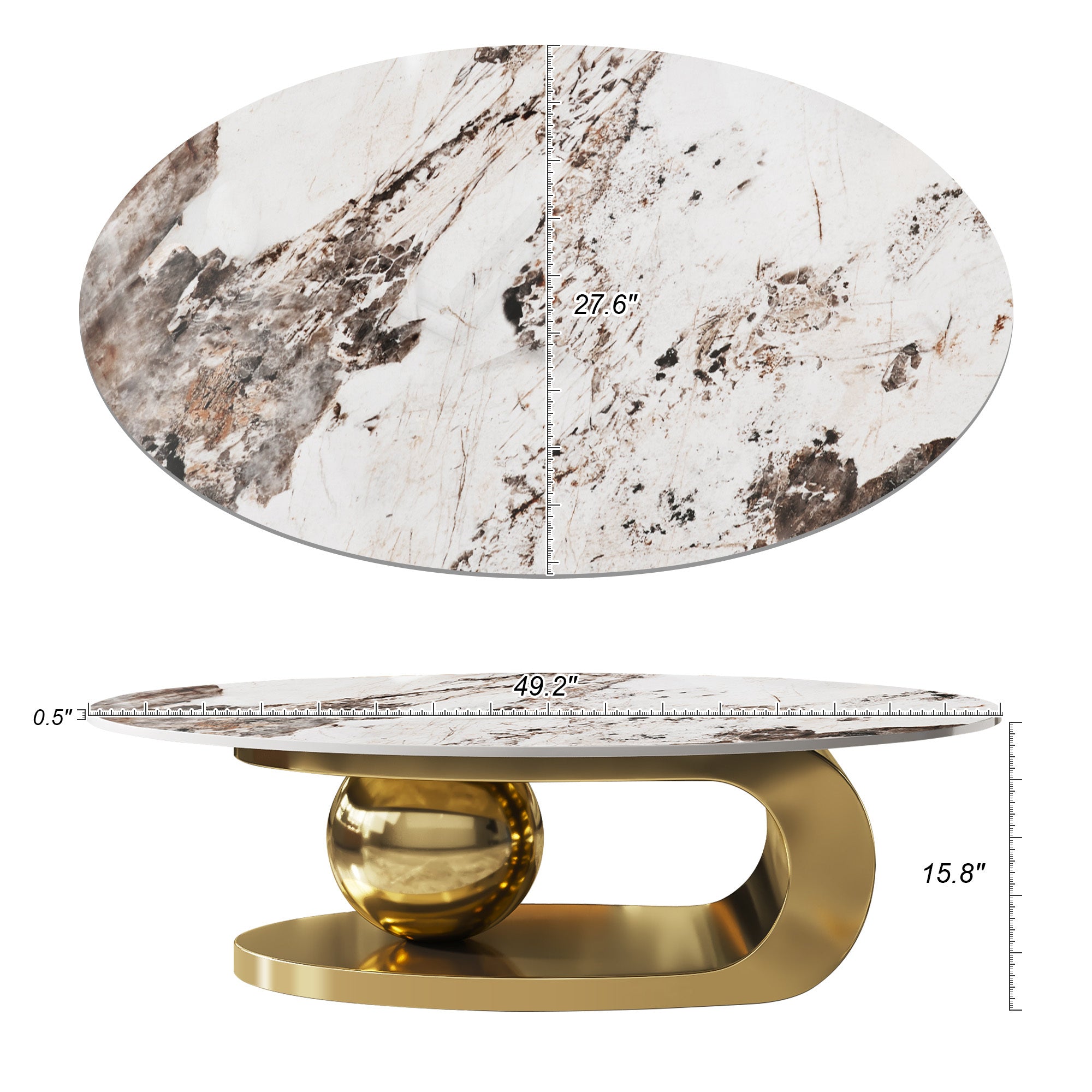 Expansive 49.2-Inch Surface: The generous oval tabletop provides ample space for styling coffee table books, floral arrangements, and serving trays while maintaining a slim, space-optimizing profile.