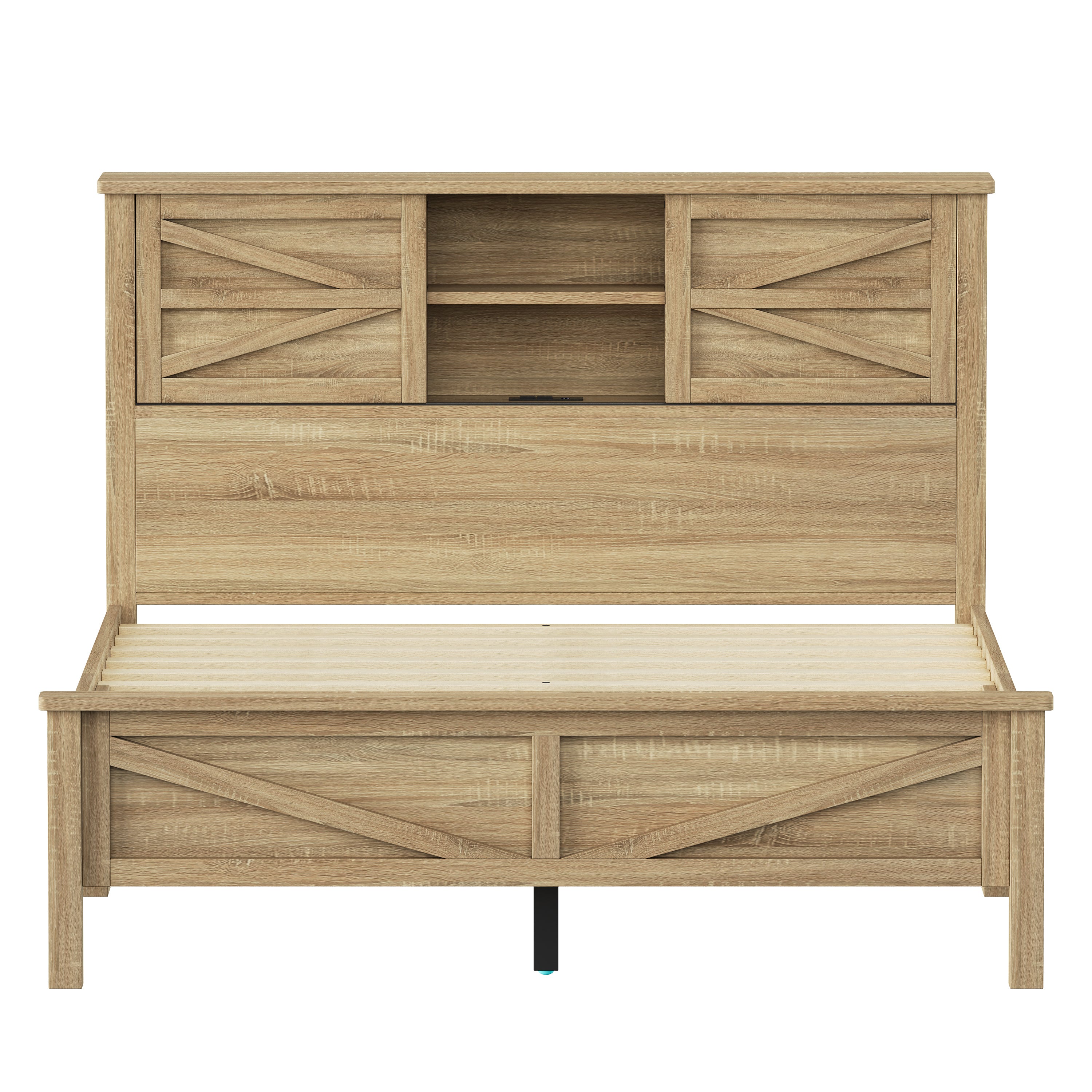 Natural Wood Queen Farmhouse Bedroom Set - 3-Piece Storage Bed with Charging Station