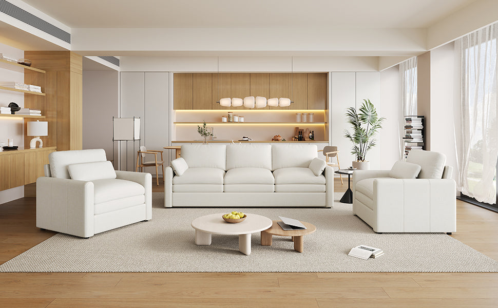 Experience the ultimate in home relaxation with our Beige Chenille Oversized Cloud Sofa. This premium upholstered set is meticulously engineered with a double-layer cushion design, providing a unique combination of deep-seated softness and long-lasting structural support. Wrapped in luxurious beige chenille, this sofa offers a warm, inviting aesthetic that transforms any living room into a sophisticated sanctuary of comfort.