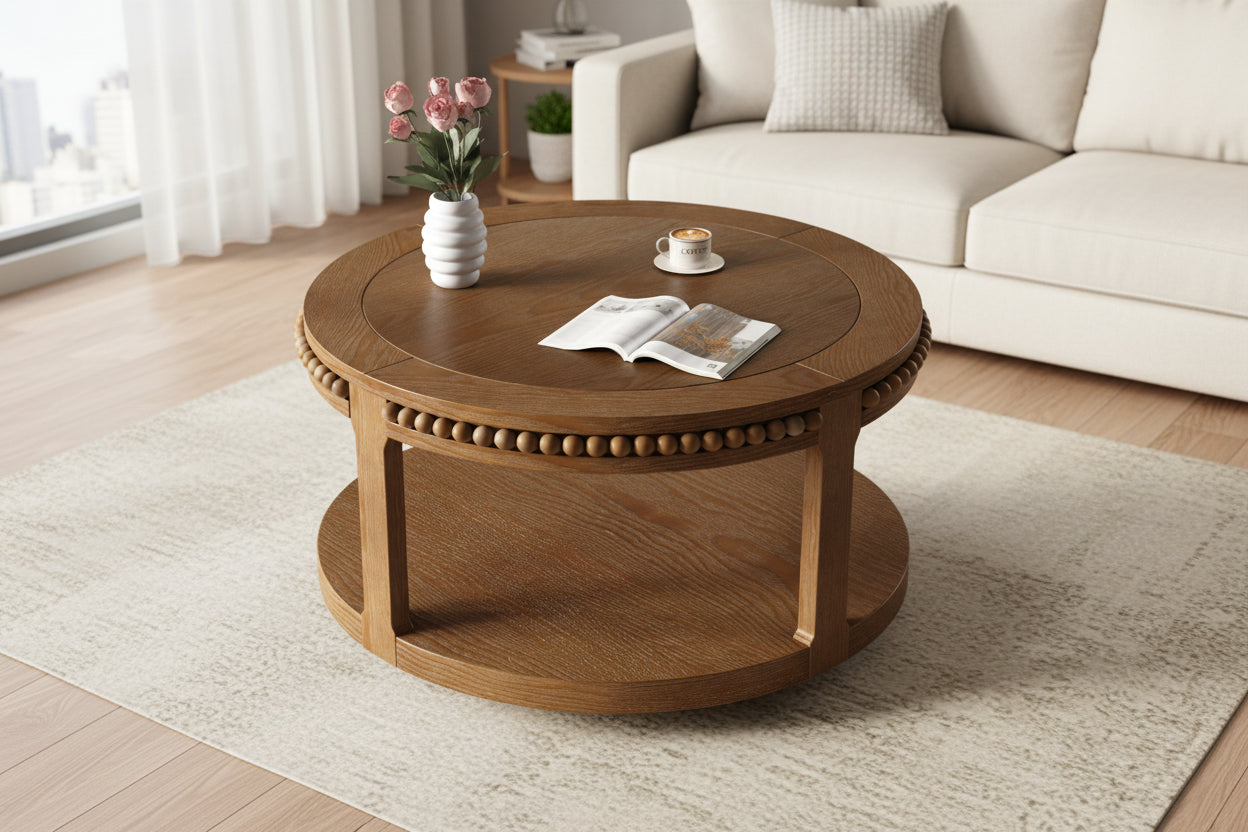 Elevate your living room with our 31.5-Inch Round Solid Wood Coffee Table in a rich, deep Walnut finish. This expertly crafted centerpiece features a thickened top plate and a dual-layer structure, providing a "cloud-like" organic aesthetic with heavy-duty durability. Designed for both style and utility, the two-tier design offers a massive increase in storage capacity while maintaining a compact, space-saving circular footprint.