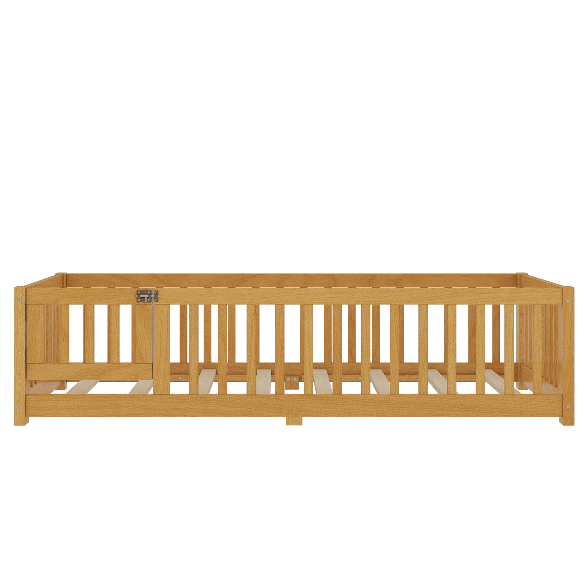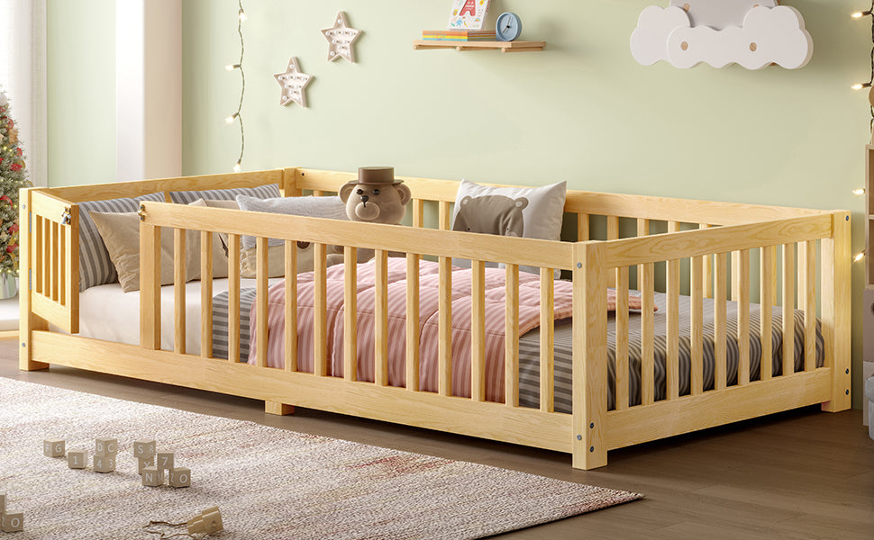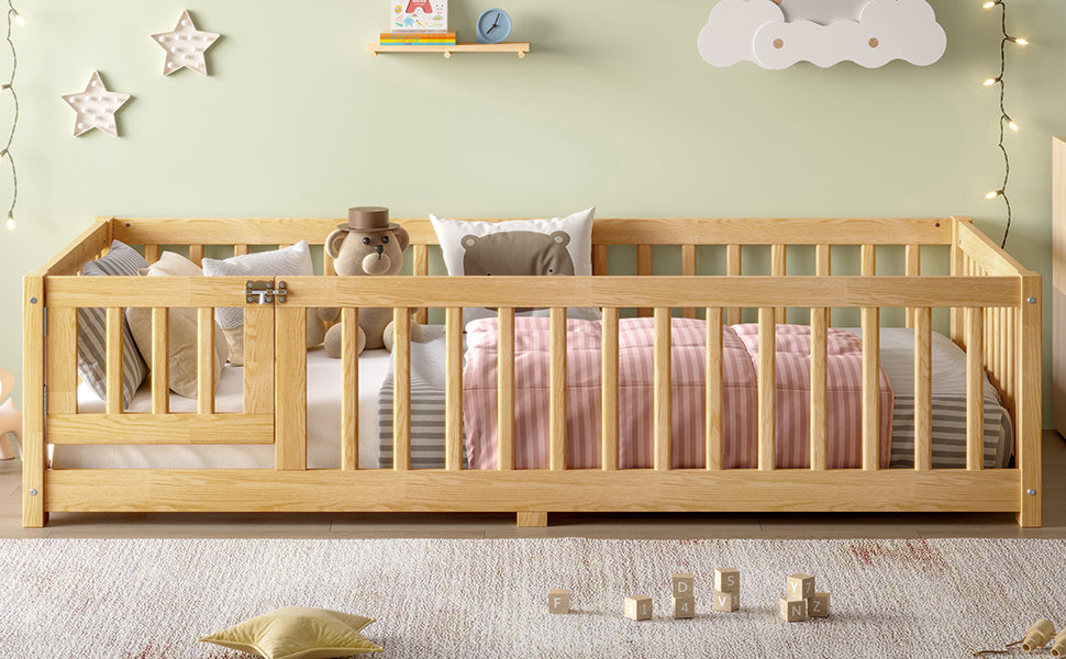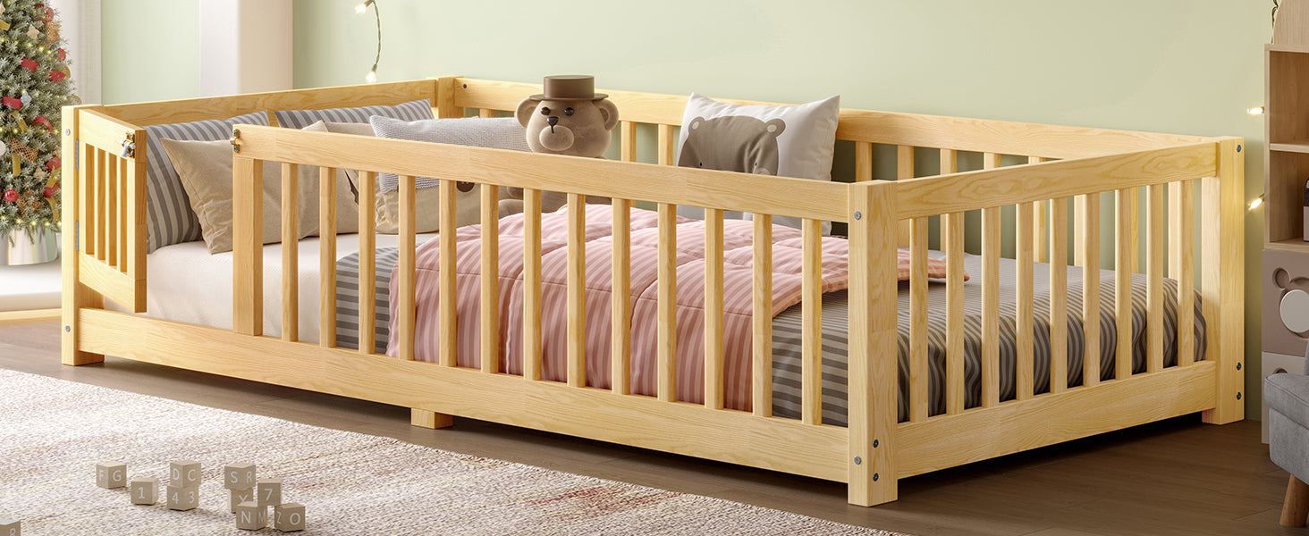 Twin Size Bed Floor Bed with Safety Guardrails and Door for Kids, Natural(Old SKU: W1580P154623)