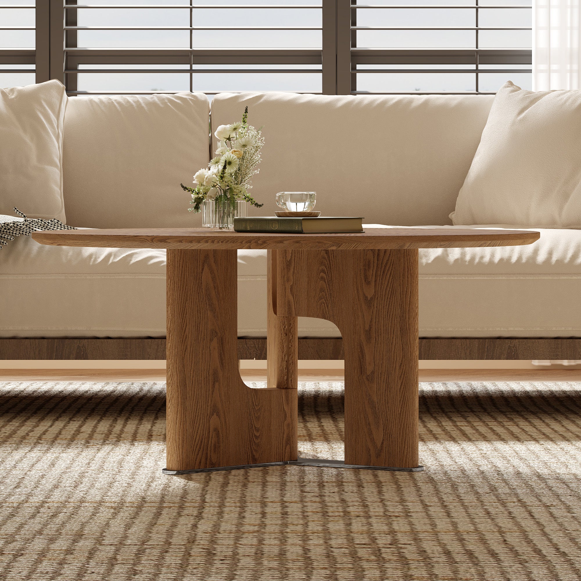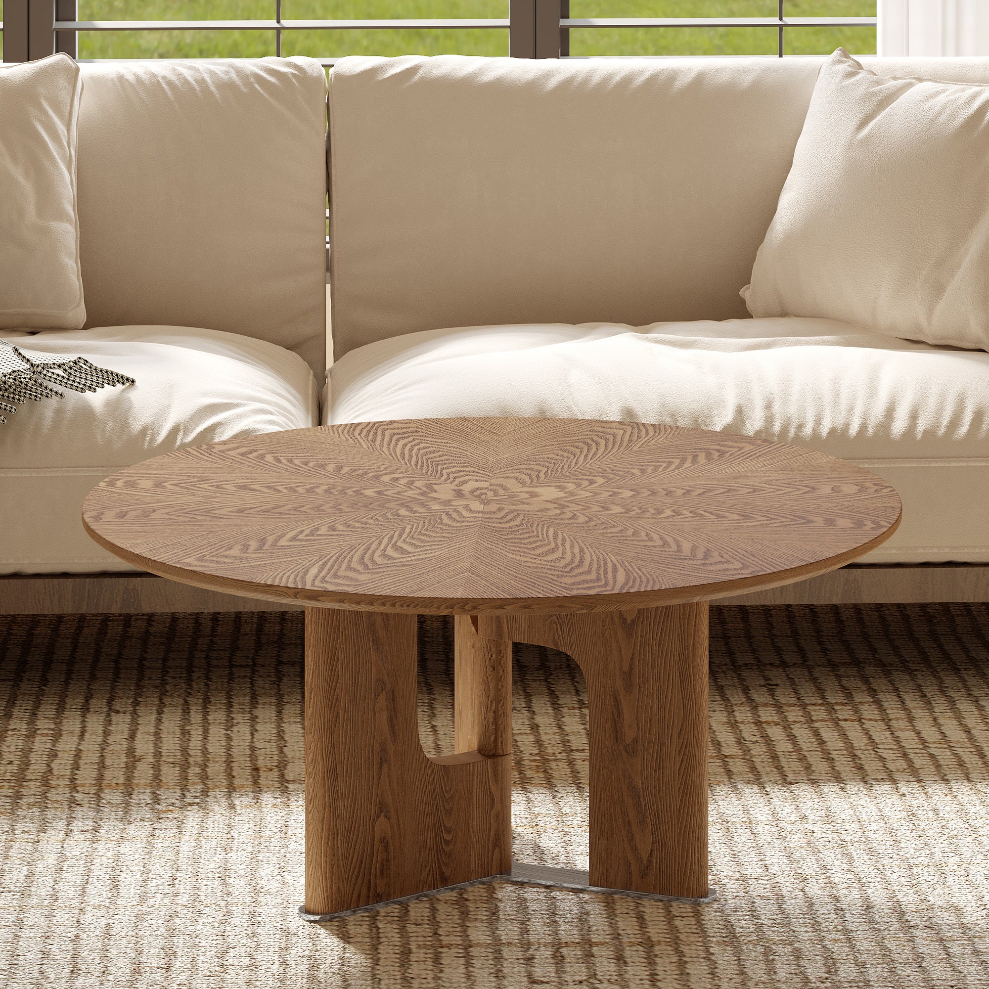 Enhance your compact living area with our 31.5-Inch Round Rustic Ash Wood Coffee Table. This expertly crafted centerpiece features a high-definition ash wood veneer that brings a warm, organic texture to your home.1 Designed specifically for smaller floor plans, its circular silhouette provides a "cloud-like" flow to your room, eliminating sharp corners and creating a safer, more inviting environment for apartments or cozy nooks.2