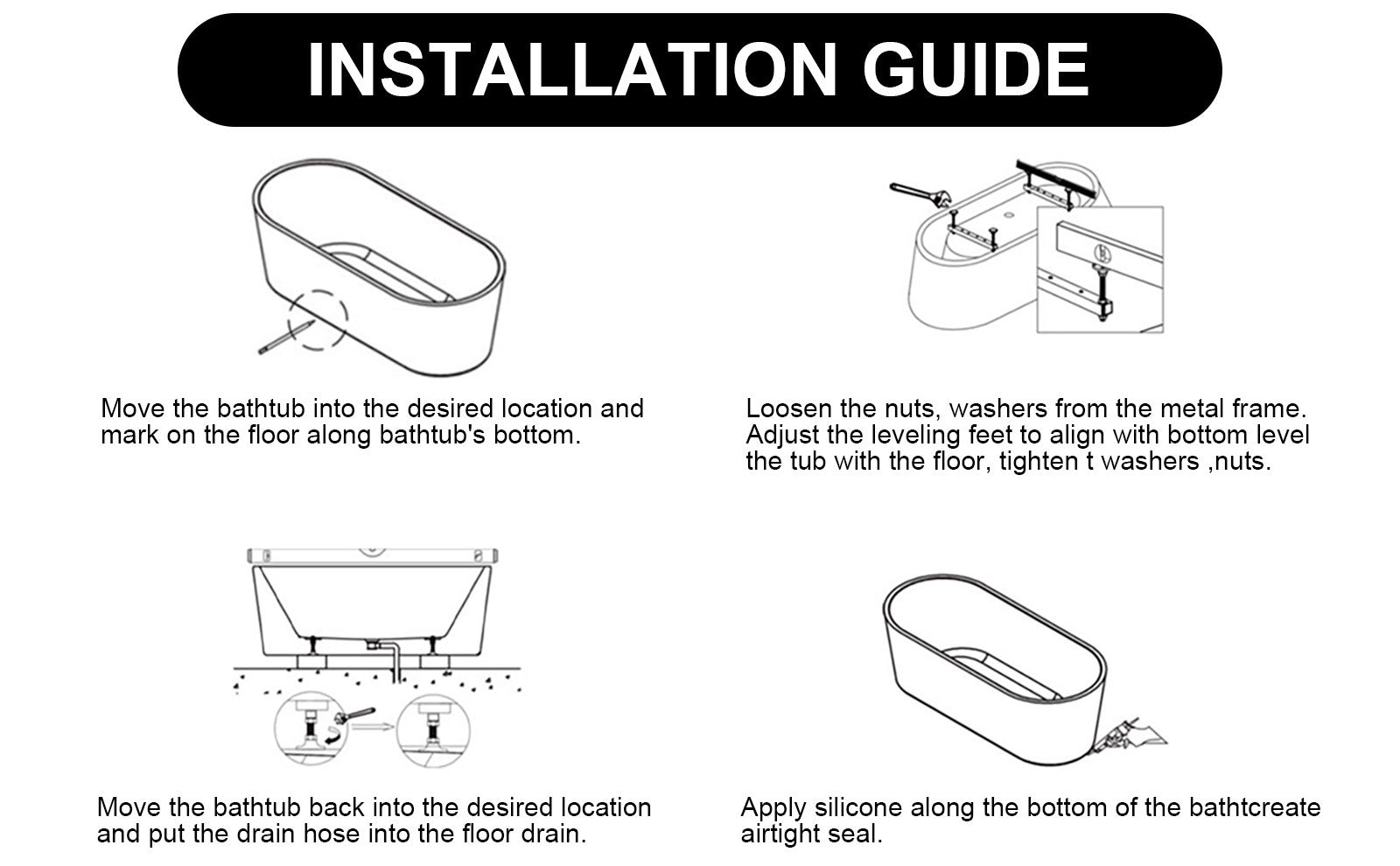 - Easy Installation: The bathtub's straightforward design and lightweight construction facilitate easy installation, reducing labor costs and ensuring a hassle-free setup process.
