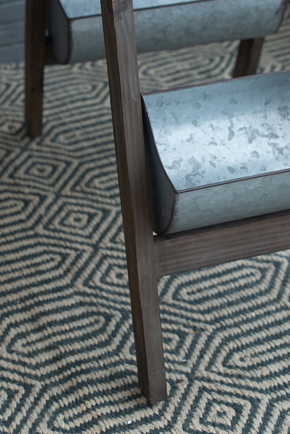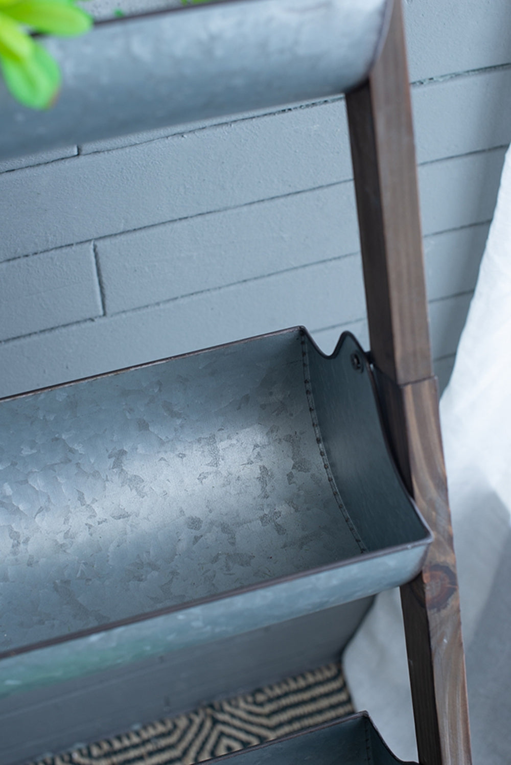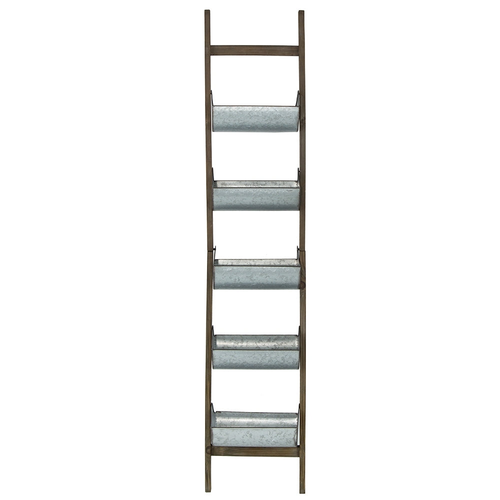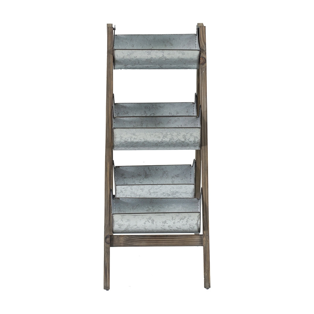 Farmhouse Foldable Reed Galvanized and Wood Ladder Planter 14.2' x 7.5' x 70.9'