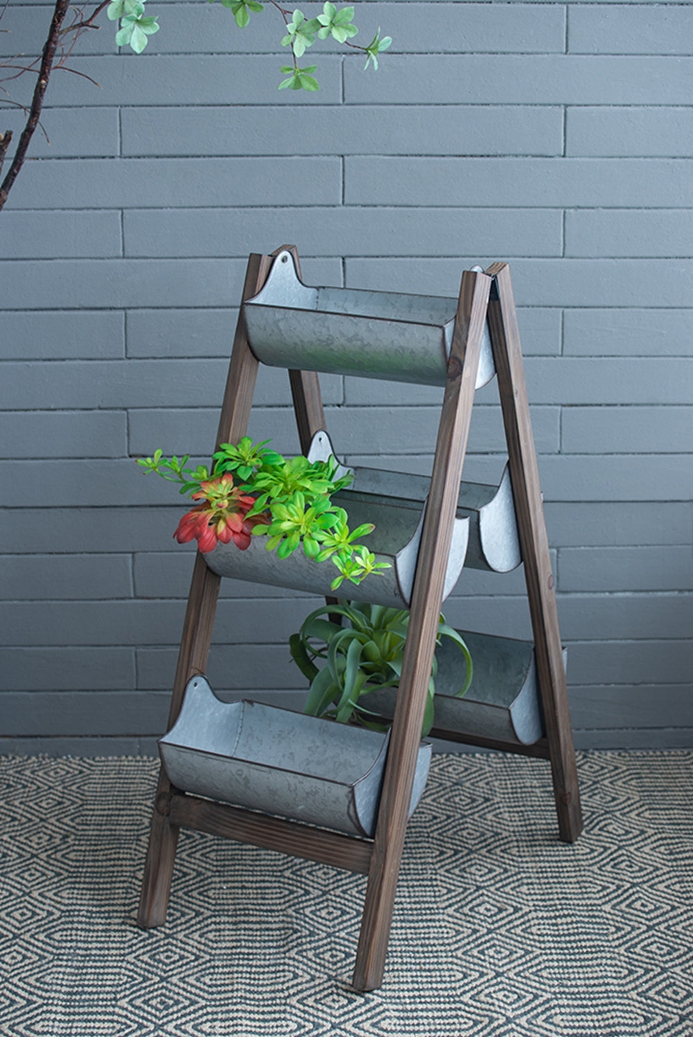 farmhouse planter ladder, vertical garden ladder, foldable wood planter, galvanized metal planter, rustic ladder shelf, indoor outdoor plant stand, space-saving garden decor, tall ladder planter