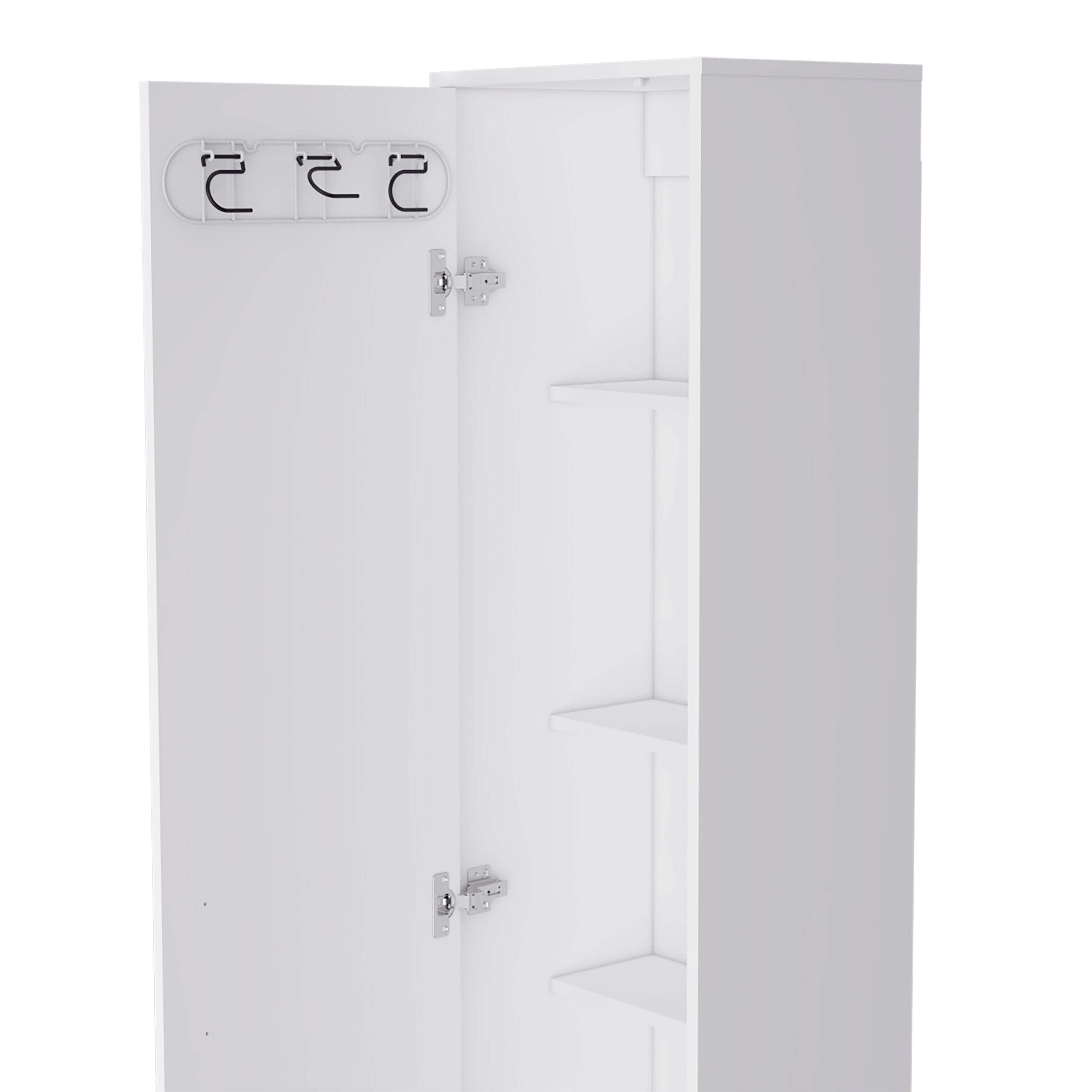 Lawen Tall Storage Cabinet, Single Door, 3 Broom Hangers