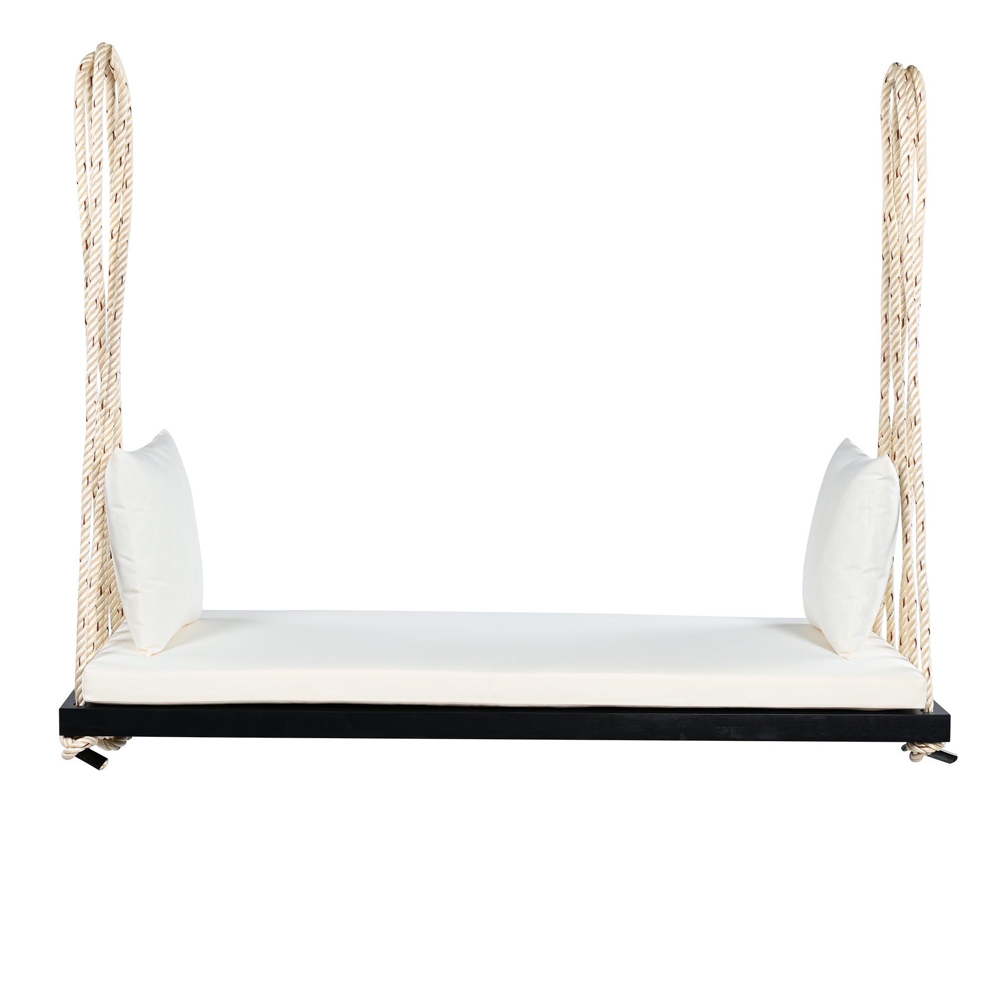 - [Dimension&Notice] Overall size:63.0x23.6x2.0inch(LXWXH), Seat Cushion: 59.4x23.6x2.8inch; Pillow:15.7x15.7x4.7inch;Each rope length:10.8ft. Notice: Swing must be supported by adequate structure to avoid falling. To prevent personal or property damage, all swings should be installed by a Licensed Building Contractor. Hanging hardware is not included as it needs to be determined on site.