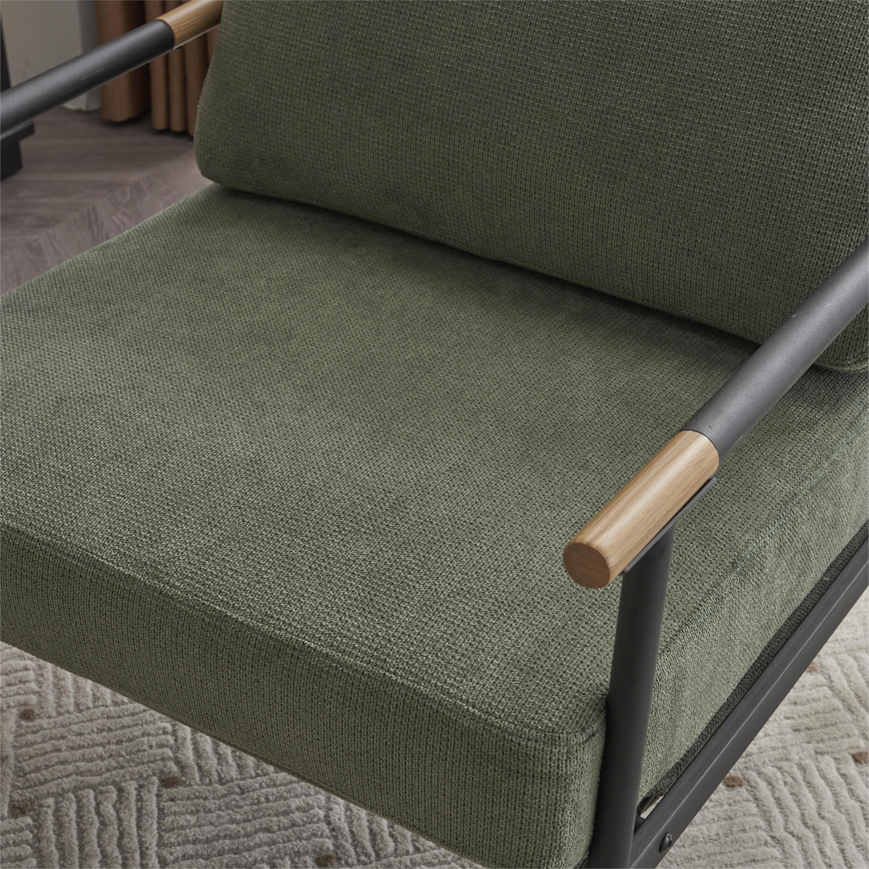 Upholstered Mid Century Lounge Chair Reading Armchair Chenille Fabric Modern Arm Chair with Metal Frame , Accent Chair for Living Room, Green