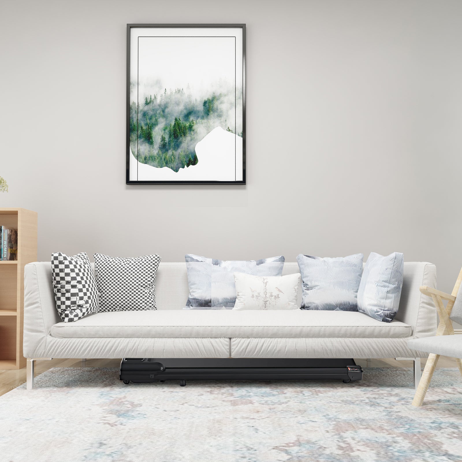 - Powerful 2.5HP Quiet Motor: Equipped with a 2.5 HP high-power silent motor, the walking pad is perfect for running, jogging, and walking in the comfort of your home. The durable steel frame and multi-layer shielding design, shock absorption, and noise reduction of the treadmill under the table make your running quieter, safer, and more comfortable./Easy to Move and Store & No Assembly Required: The built-in transport of two wheels makes it easy to move and store under the desk treadmill to save
