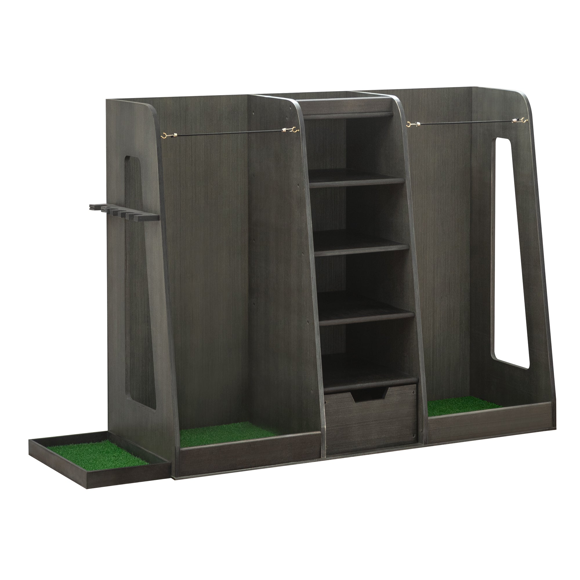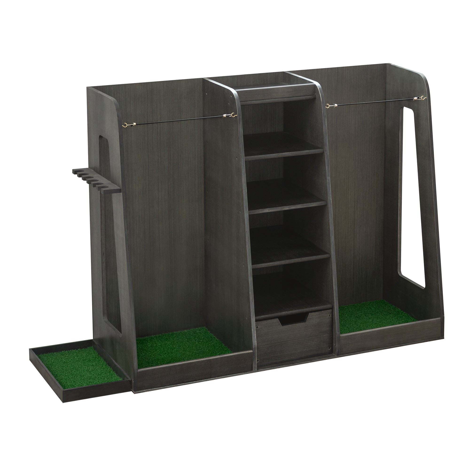• Built-in drawers for accessories like balls, tees, gloves