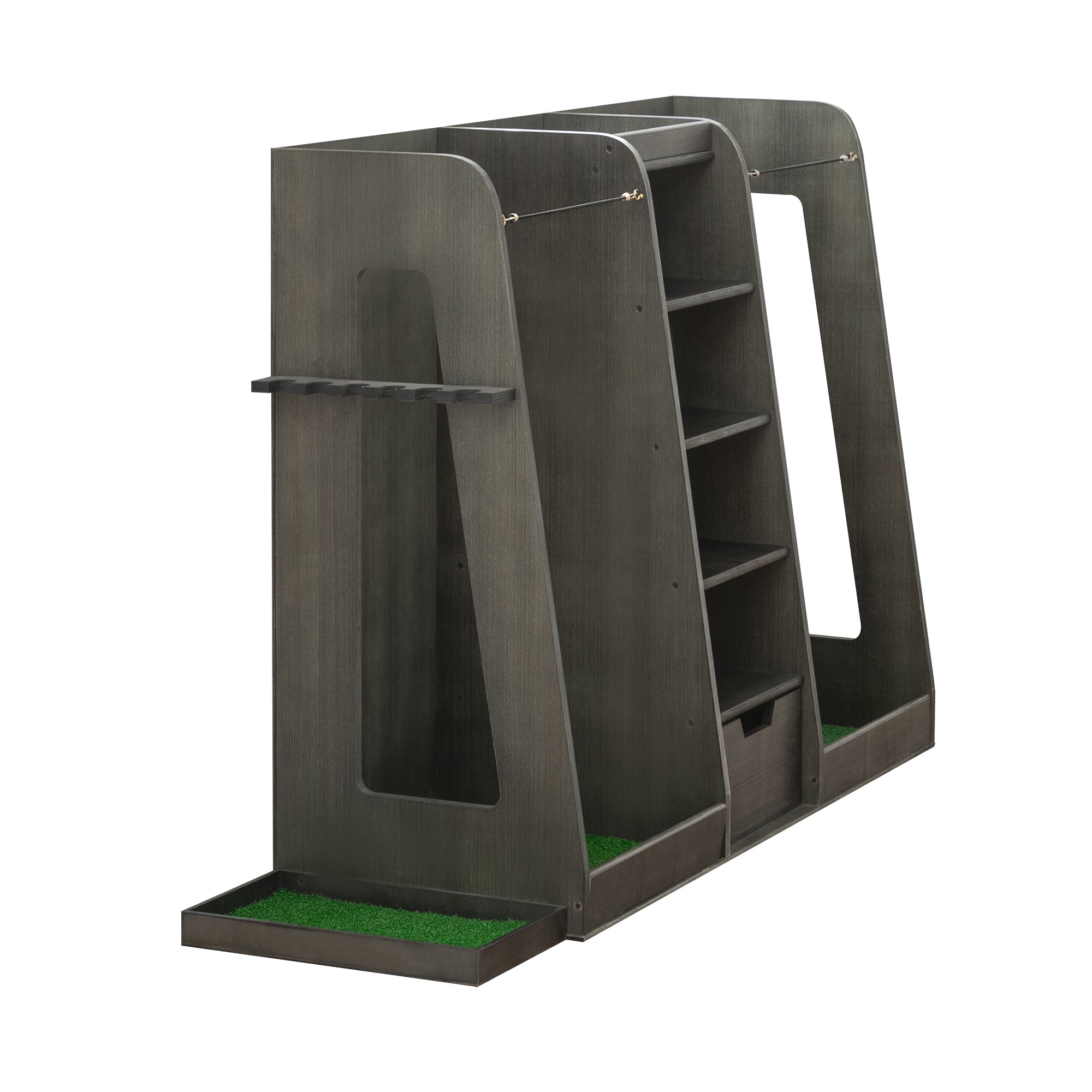 • 【Golf Club Storage Area】For easy access and organization, our storage racks come with a side bracket with club holders, allowing you to easily switch clubs during use.