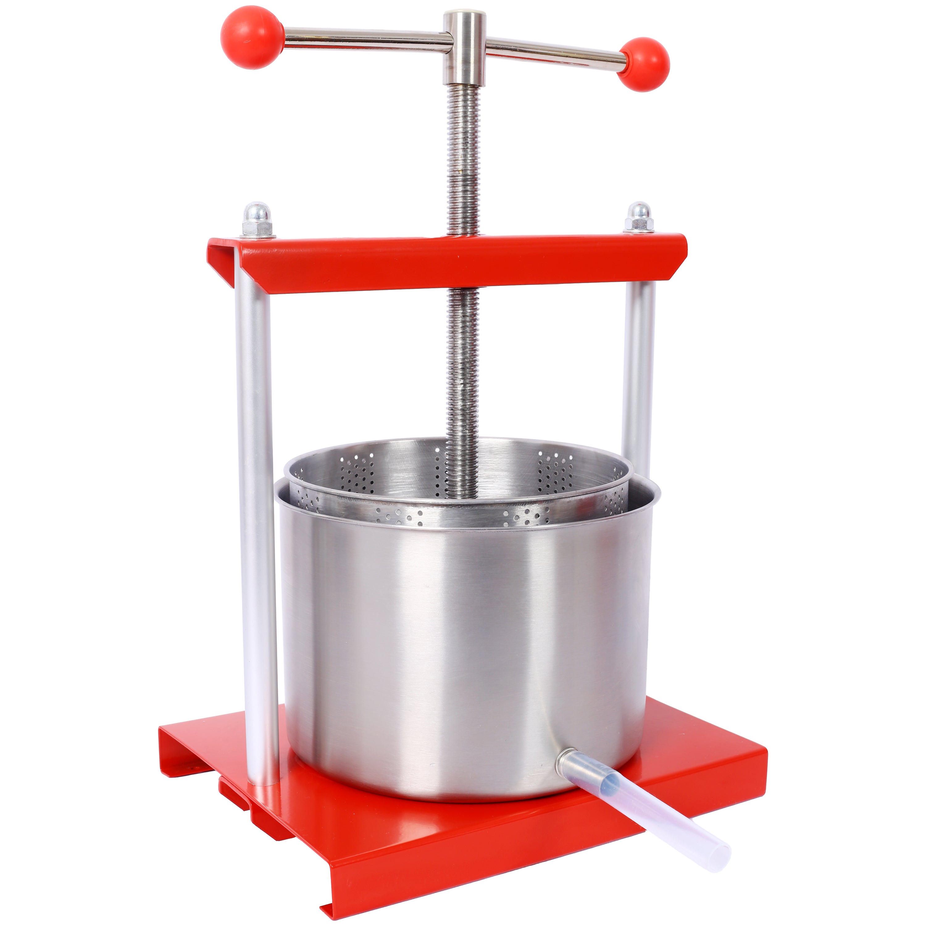 Maximize your yield of fresh juices and oils with this efficient 1.6 Gallon Manual Wine Press. Featuring two durable Stainless Steel Barrels, this heavy-duty machine is engineered for exceptional longevity and simple operation. It utilizes reliable screw pressure to efficiently extract pure liquid from a wide variety of produce.