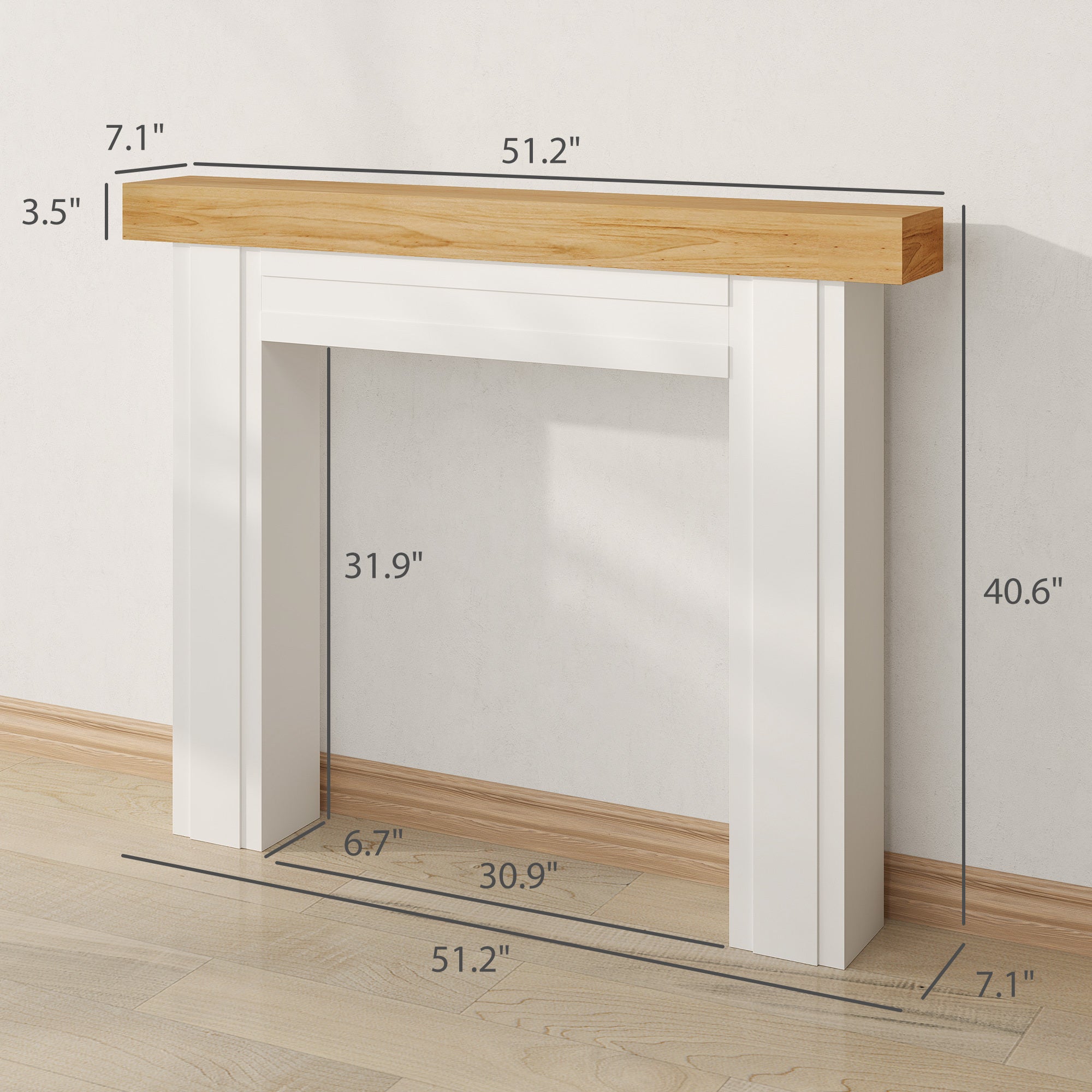 Features: - Minimalist-style frame and a natural wood-grain top enhance your living space aesthetics - Great for electric fireplaces or as a standalone decorative piece - Top board is great for displaying personal decorations - Constructed from MDF for durability - Anti-tipping kit provides extra stability - Simple assembly required Specification: - Color: Natural Wood, White - Material: MDF - Overall Dimensions: 51.2' W x 7.1' D x 40.6' H - Top Board Size: 51.2' W x 7.1' D - Fireplace Space Size: 30.9' W x 6.7' D x 31.9' H - Leg Size: 6.7' W x 6.7' D - Weight Capacity: 66 lbs. NOTE: This is for electric fireplaces only, not gas Package Includes: - 1 x Fireplace Mantel - 1 x Manual