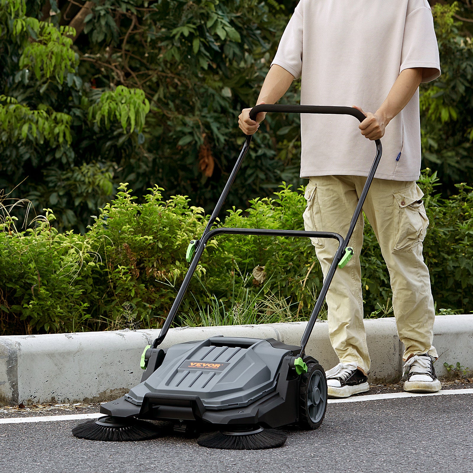 • Sweeping Faster and Smarter: VEVOR walk-behind hand push floor sweeper adopts human-powered sweeping mechanism, breaking free from the electricity and fuel constraints. No need for repetitive back-and-forth movements like laborious brooms, our large side brushes cover 25.6-inch large sweeping paths in one go, ensuring thorough and rapid cleaning, 5 times faster than traditional brooms.