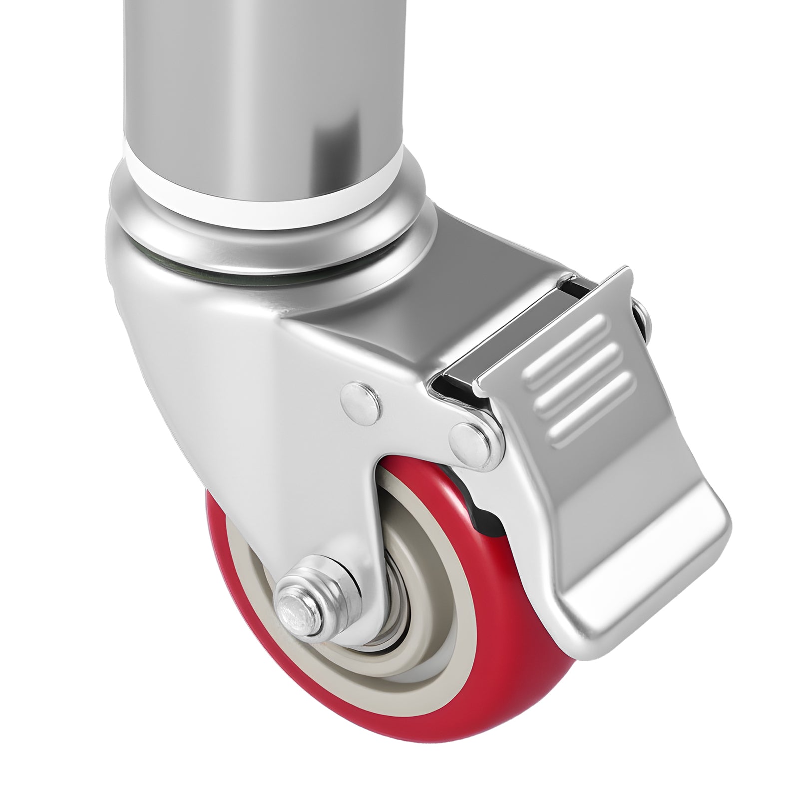 • Stable and Durable: The top shelf holds up to 400 lbs, the bottom 300 lbs, providing ample storage for your supplies. With 4 swivel casters (2 with brakes), the food prep worktable stays stable and moves easily wherever you need it