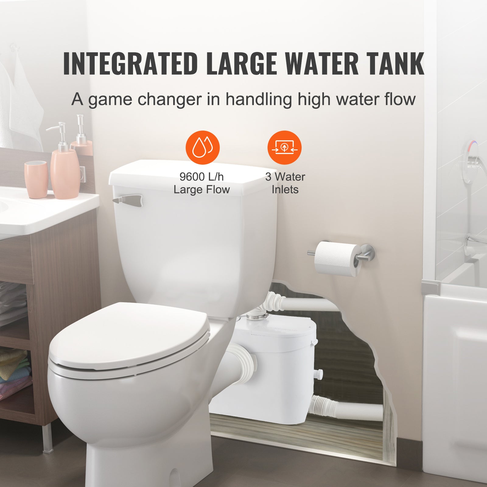 Macerator Pump, 700W, 9600 L/h Flow, 32.8 ft/10 m Head, Macerator Sewerage Sump Pump with 3 Water Inlets for Toilet, Basement, Kitchen, Sink, Shower, Bathtub Waste Water Disposal Upflush Machine