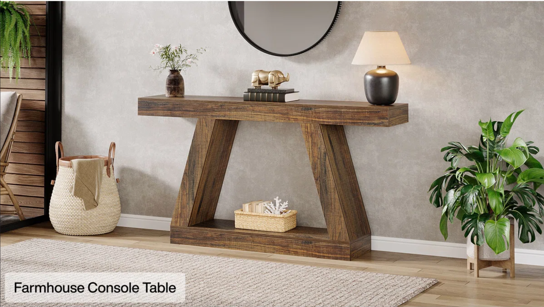 - Rustic Farmhouse Style with Industrial Character - Designed with a rich dark brown wood grain finish and clean lines, this console table brings timeless farmhouse charm to entryways, foyers, and living rooms while complementing modern industrial interiors.