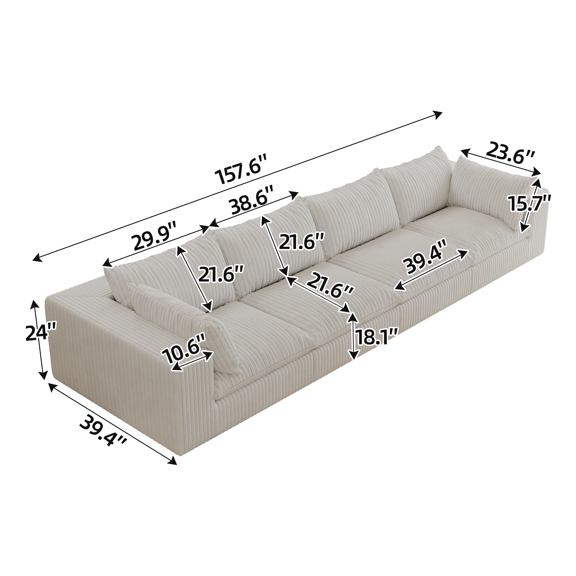 157.6" Cloud Sofa - Corduroy Deep Seat Couch, No Assembly, White