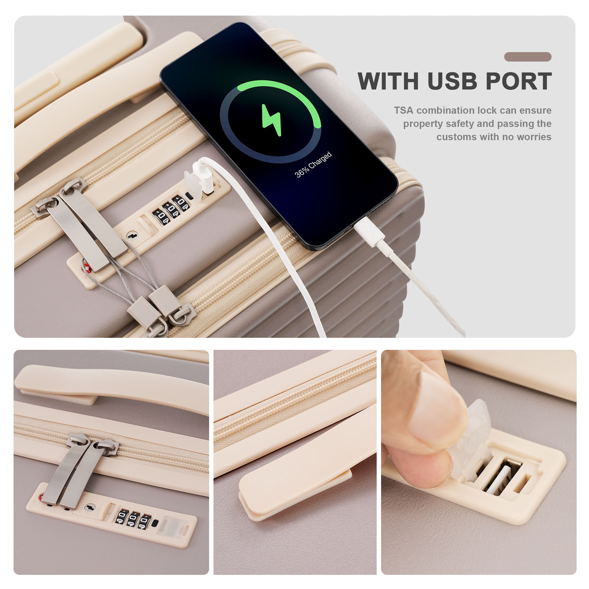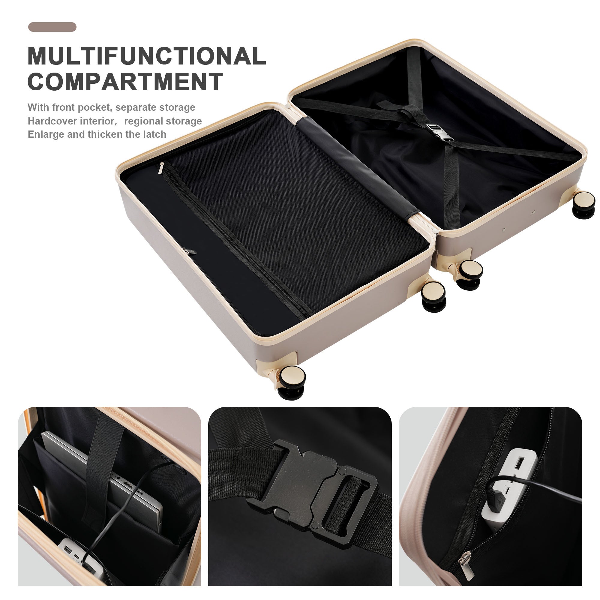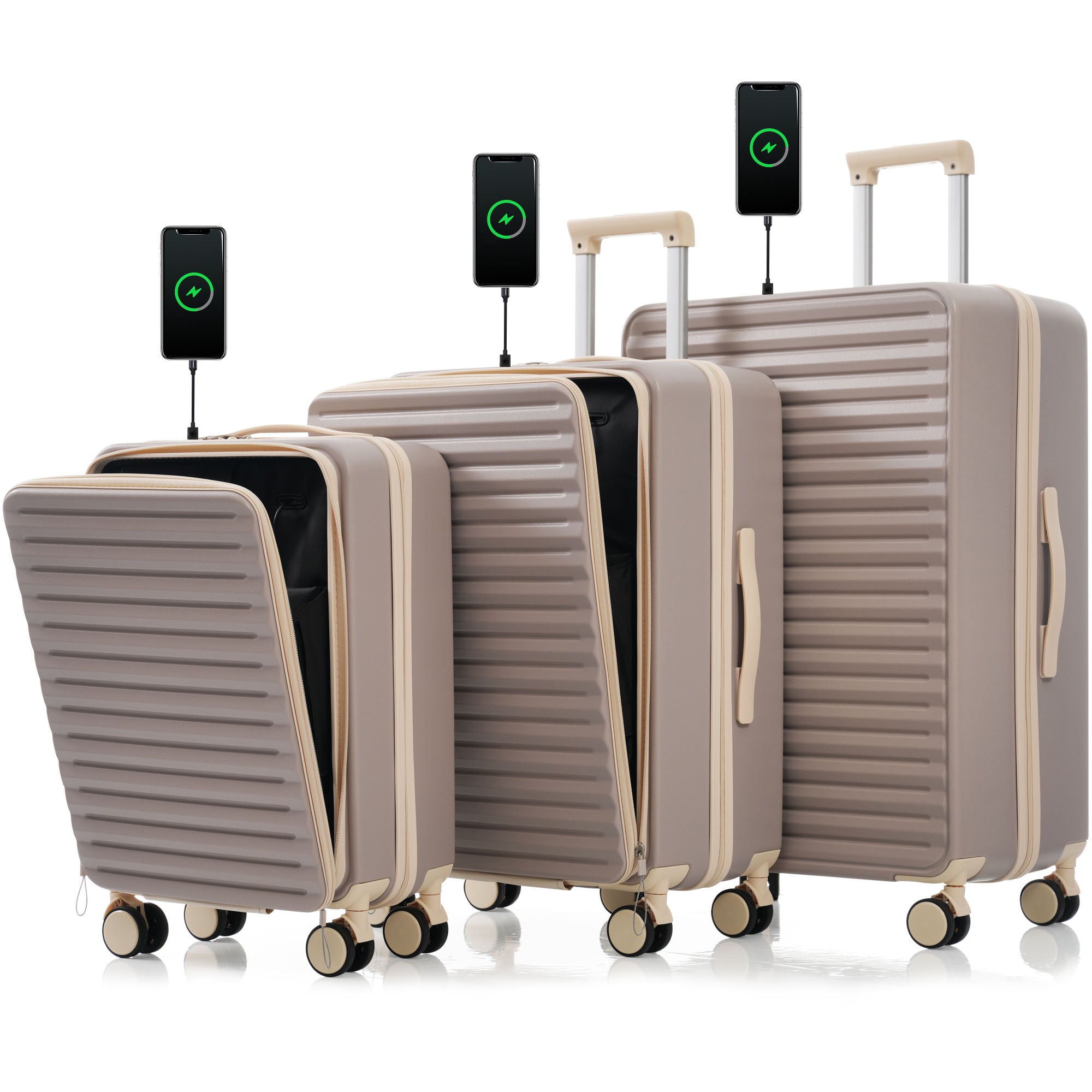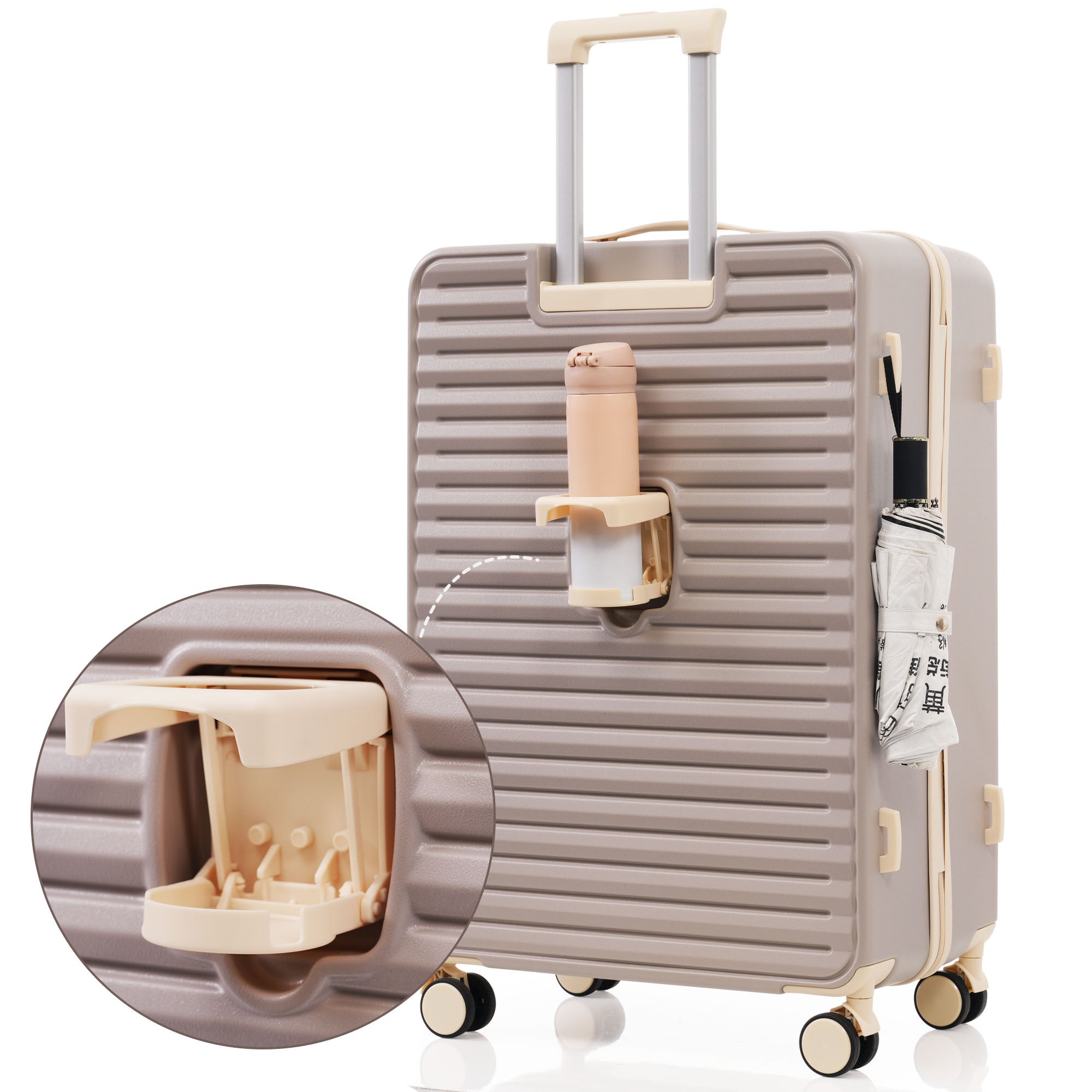 Luggage 3 Piece Sets20"24"28", 20 "24" with front pocket,Hard Shell Luggage Carry on Luggage Set with TSA Lock , usb, universal wheel,cup holder,light brown