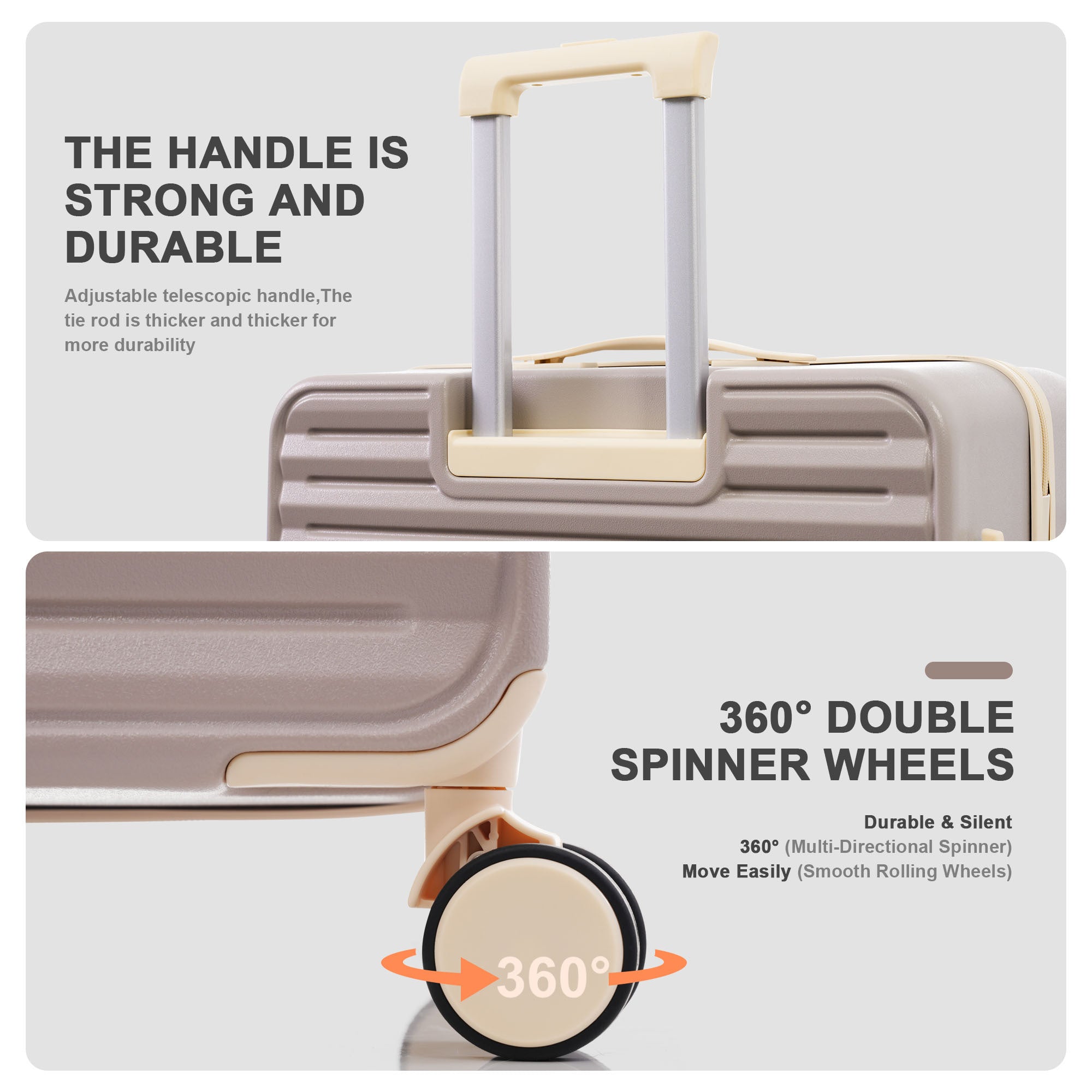 - Silent Spinner Wheel & Telescopic Handdle:4 silent spinner wheels, with soft TPU and lubricating balls inside, adapt to various grounds, and the 360° movement is very quiet and smooth. Adjustable telescopic handle, 3 levels of height adjustment, can meet the needs of different heights, and the smooth up and down design makes it more comfortable to carry.
