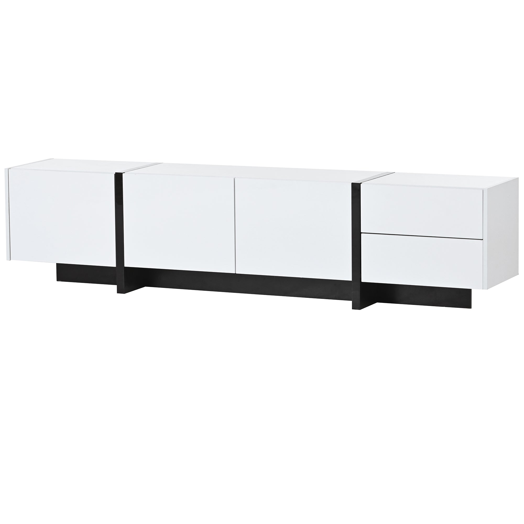 Upgrade your living room with the ON-TREND White & Black Contemporary Rectangle TV Stand, designed to support TVs up to 80''. Featuring a bold, modern design with a high-gloss UV-coated surface, this TV console adds a sleek and stylish touch to any space. Its two-tone color palette and geometric silhouette create a unique focal point, while spacious compartments provide ample storage for media devices, gaming consoles, and accessories. Perfect for contemporary interiors, this TV cabinet combines aesthetic appeal with everyday functionality.