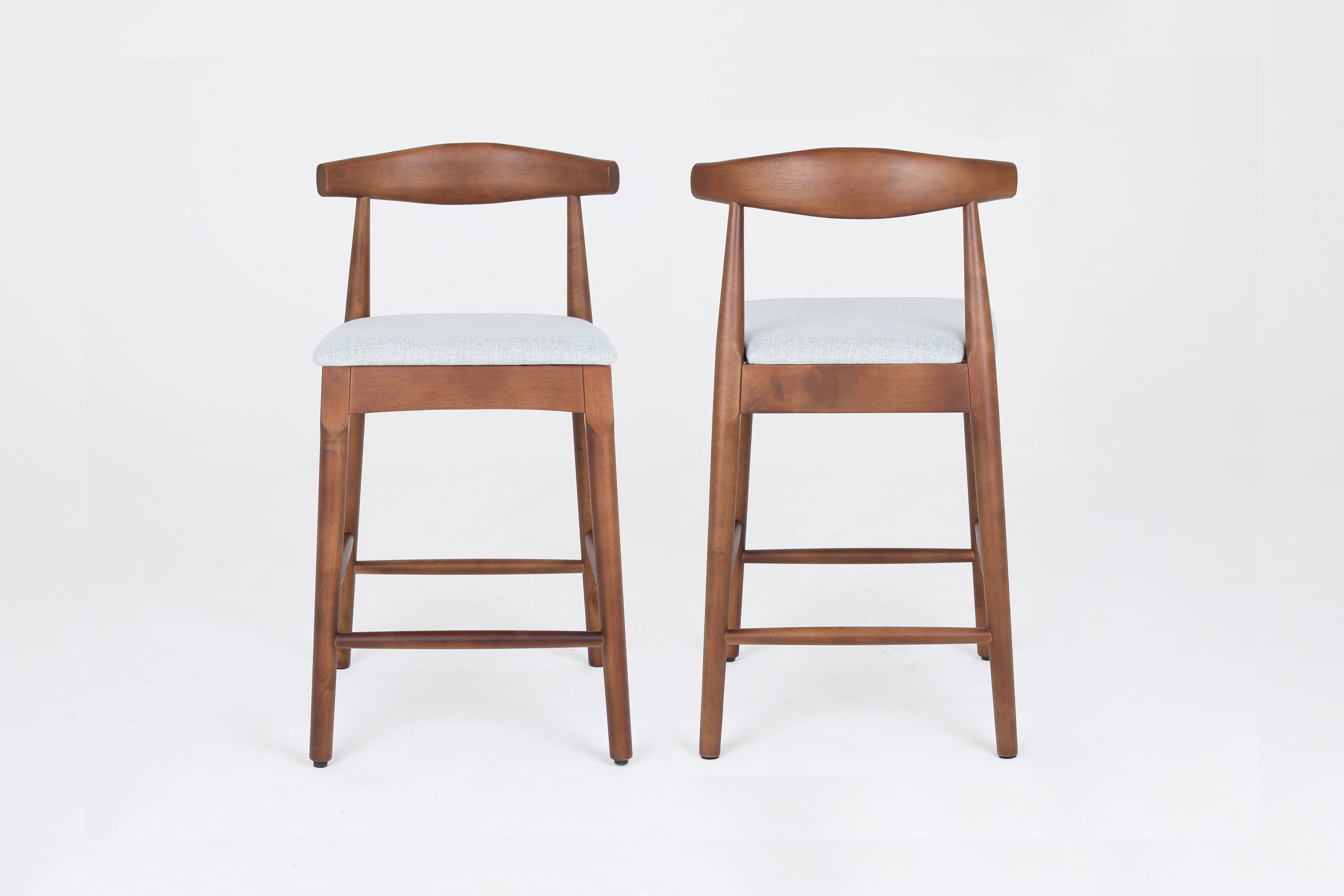 Add timeless style and comfort to your kitchen or dining area with this Set of 2 Mid-Century Modern 24-Inch Counter Stools, featuring a sleek walnut wood frame and soft upholstered light grey cushions. Designed for both elegance and everyday use, these counter-height stools are perfect for kitchen islands, breakfast bars, and dining room counters.