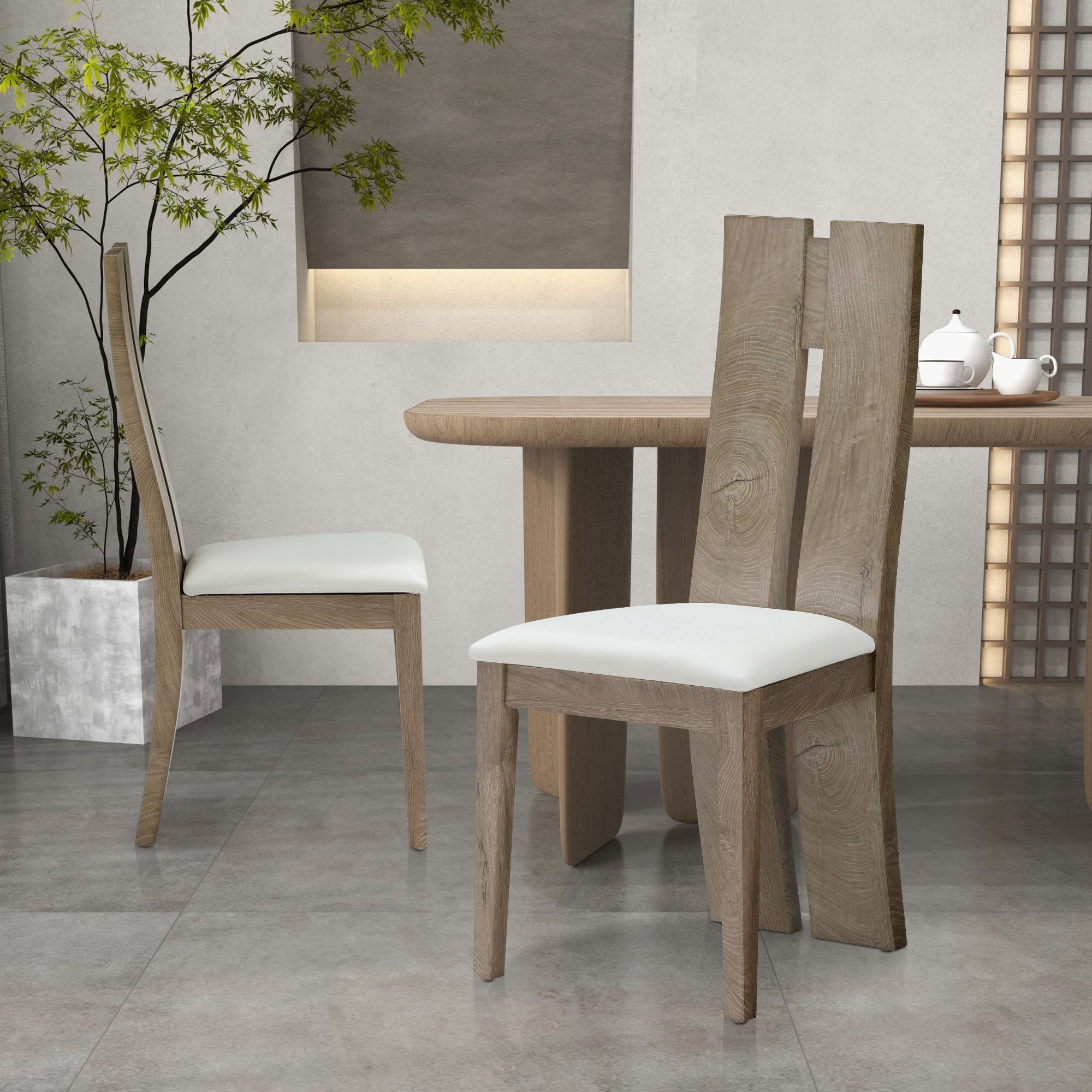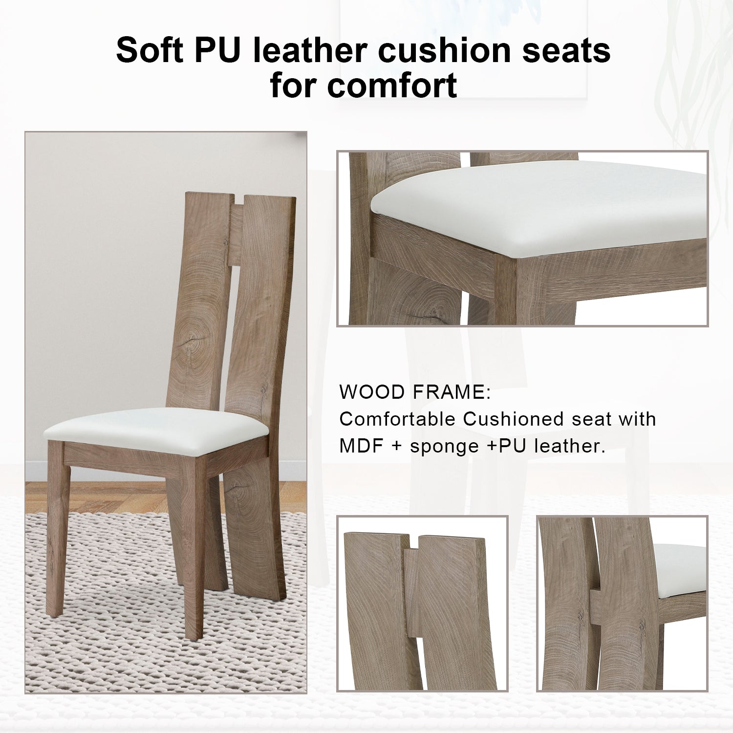 Dining Chair Set of 2 MDF, sponge,Oak,PU Leather Upholstered Cushion Seat Wooden Back Side Chairs.