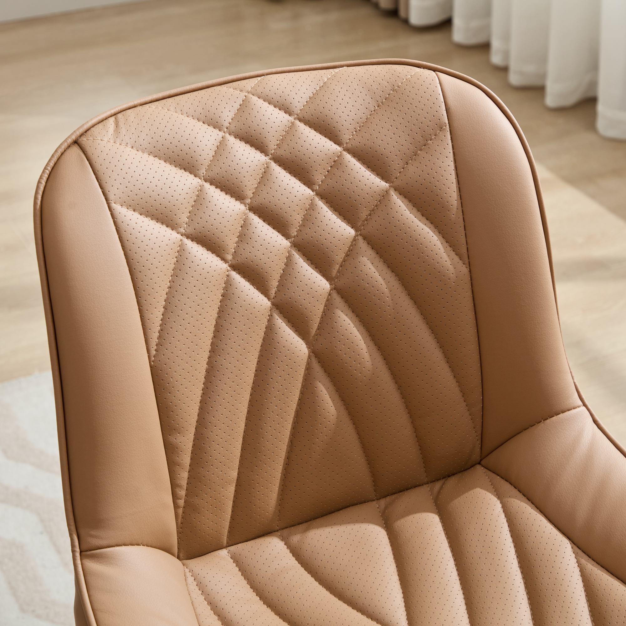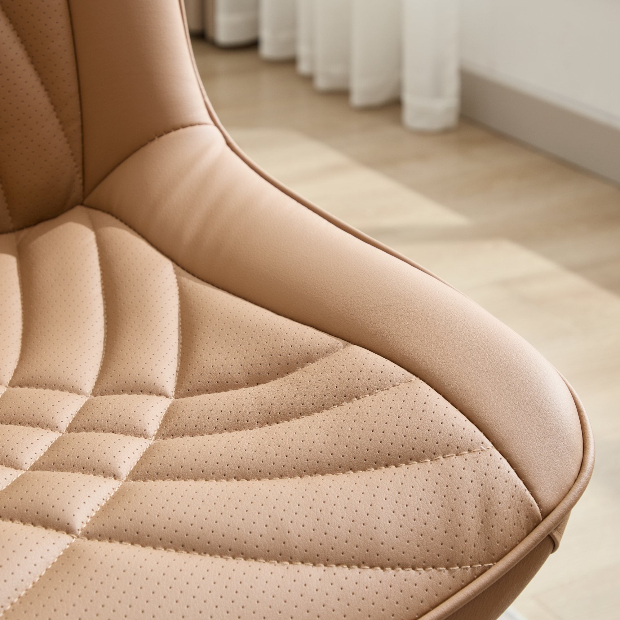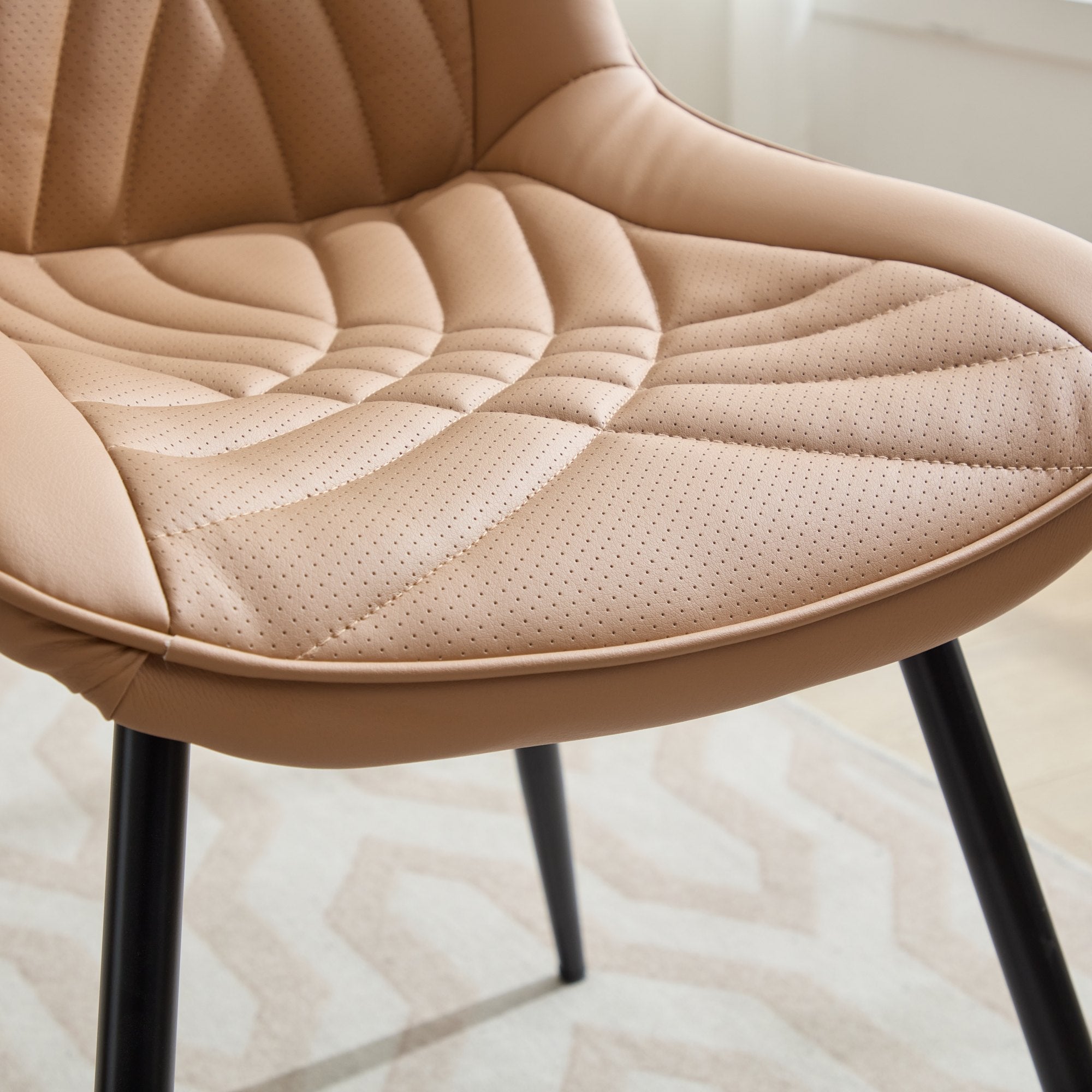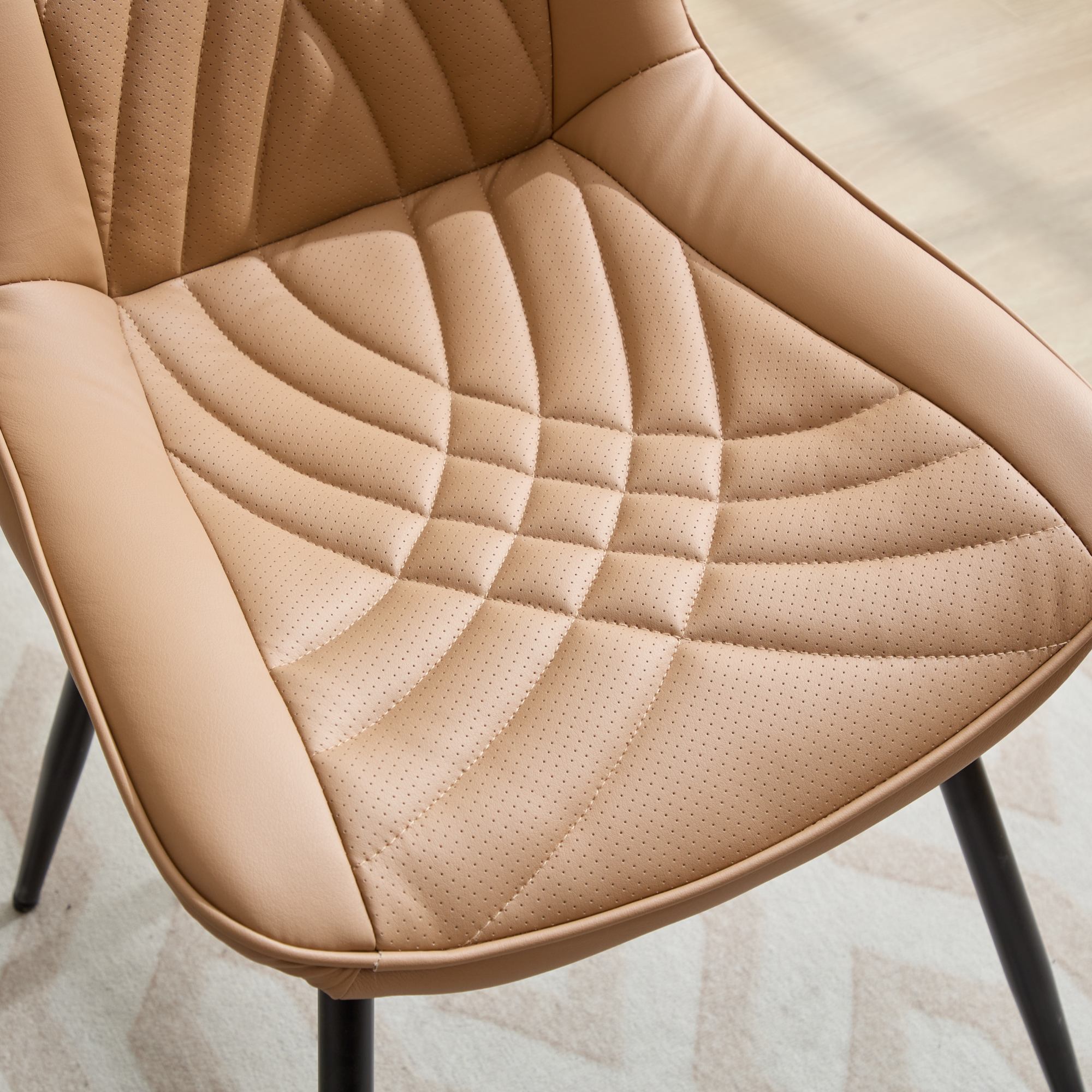 - The PU fabric of the chair cushion adopts a perforated design, which significantly enhances air permeability and prevents your pants from getting sweaty and sticking to your body even when you sit for a long time. Meanwhile, the fabric also utilizes a quilting process with graceful curves. The beautiful sewing workmanship is well-proportioned with concave and convex parts, and it can keep the surface free from wrinkles after use.