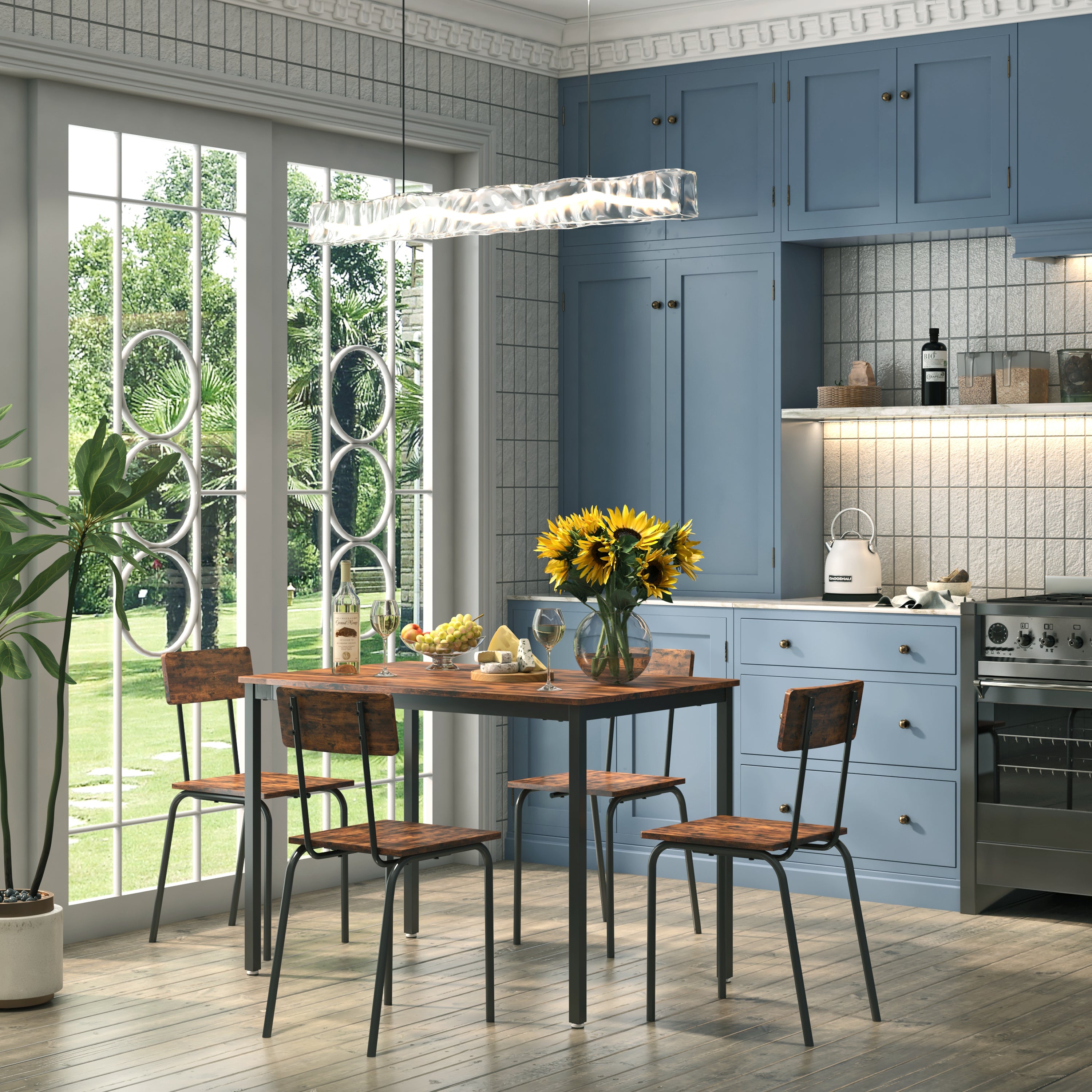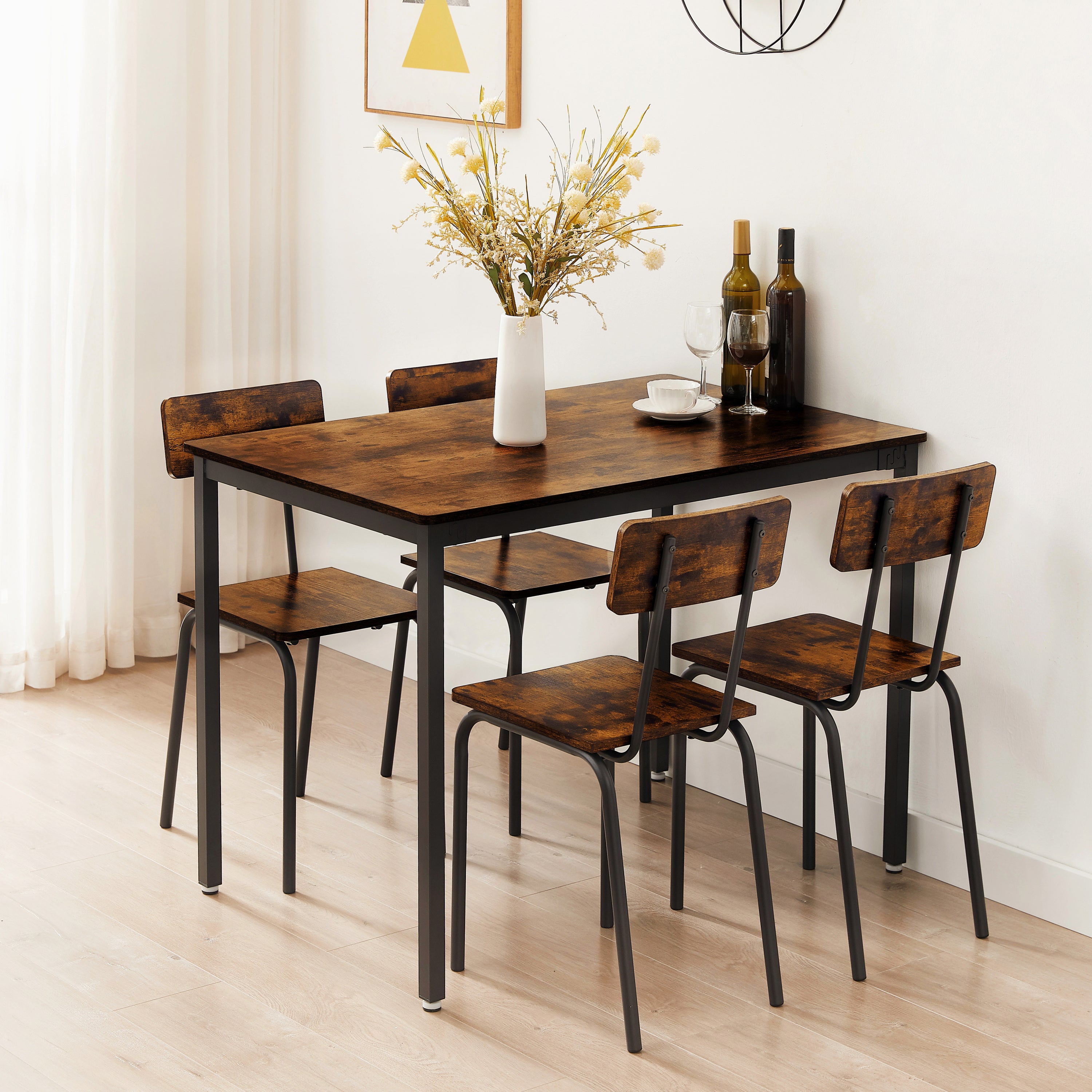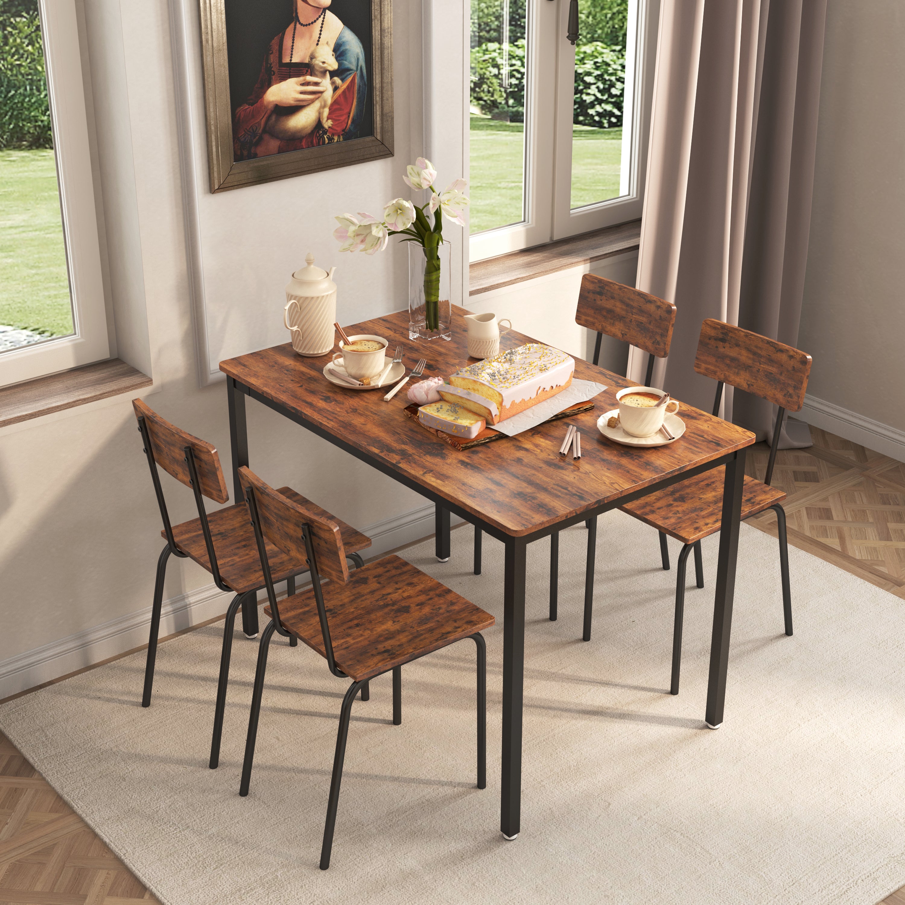 Dining Table Set 5-Piece Dining Chair with Backrest, Industrial style, Sturdy construction. Rustic Brown, 43.31'' L x 27.56'' W x 30.32'' H.