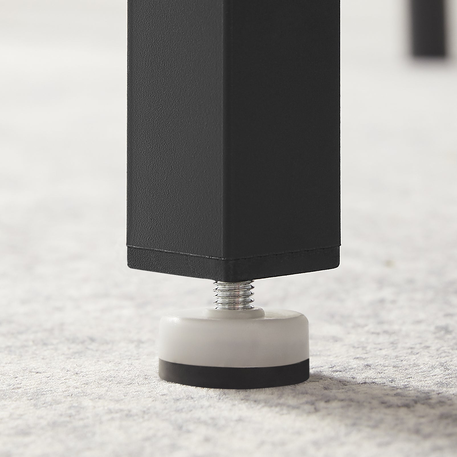 Adjustable feet keep your table stable even on uneven ground and protect your floor from being scratched.