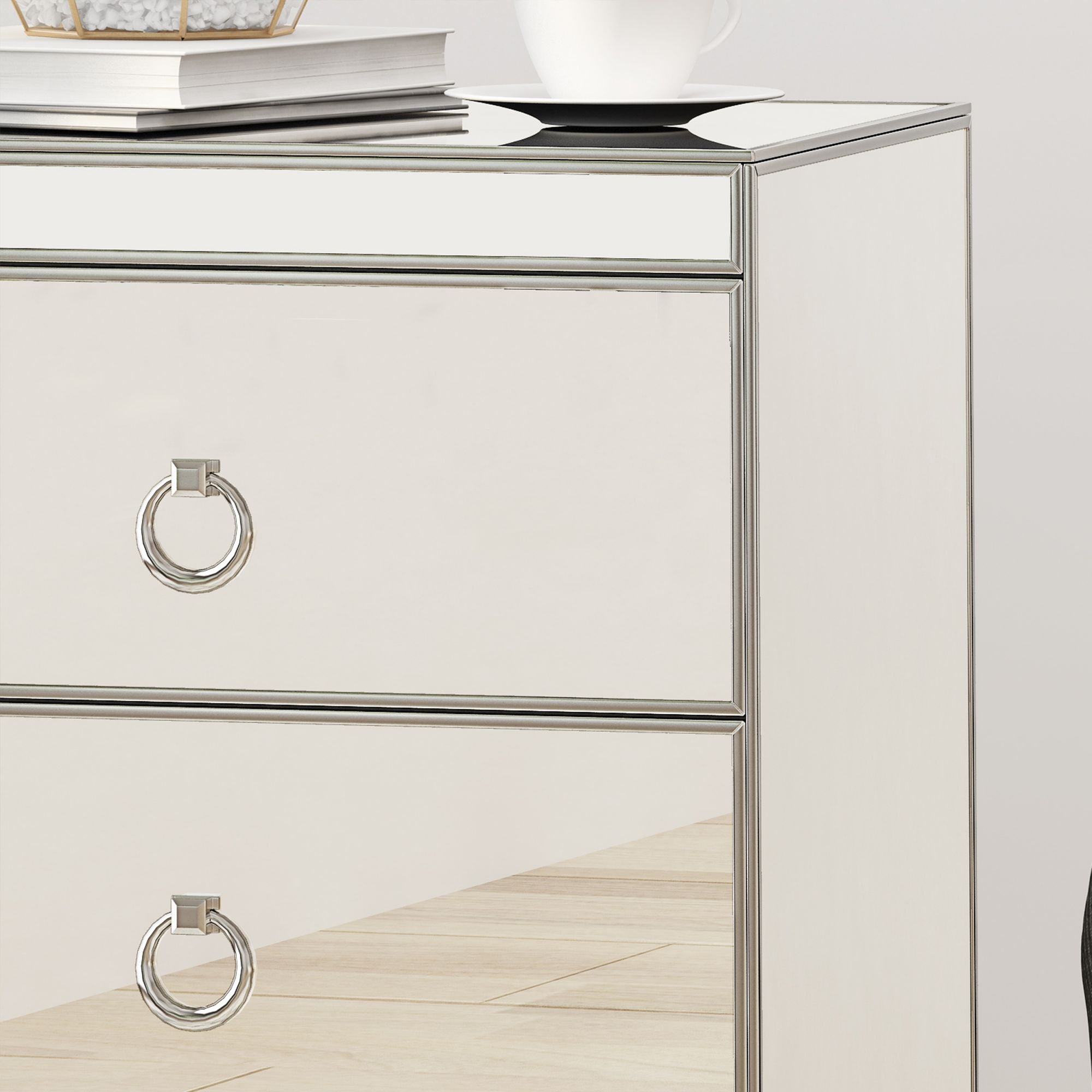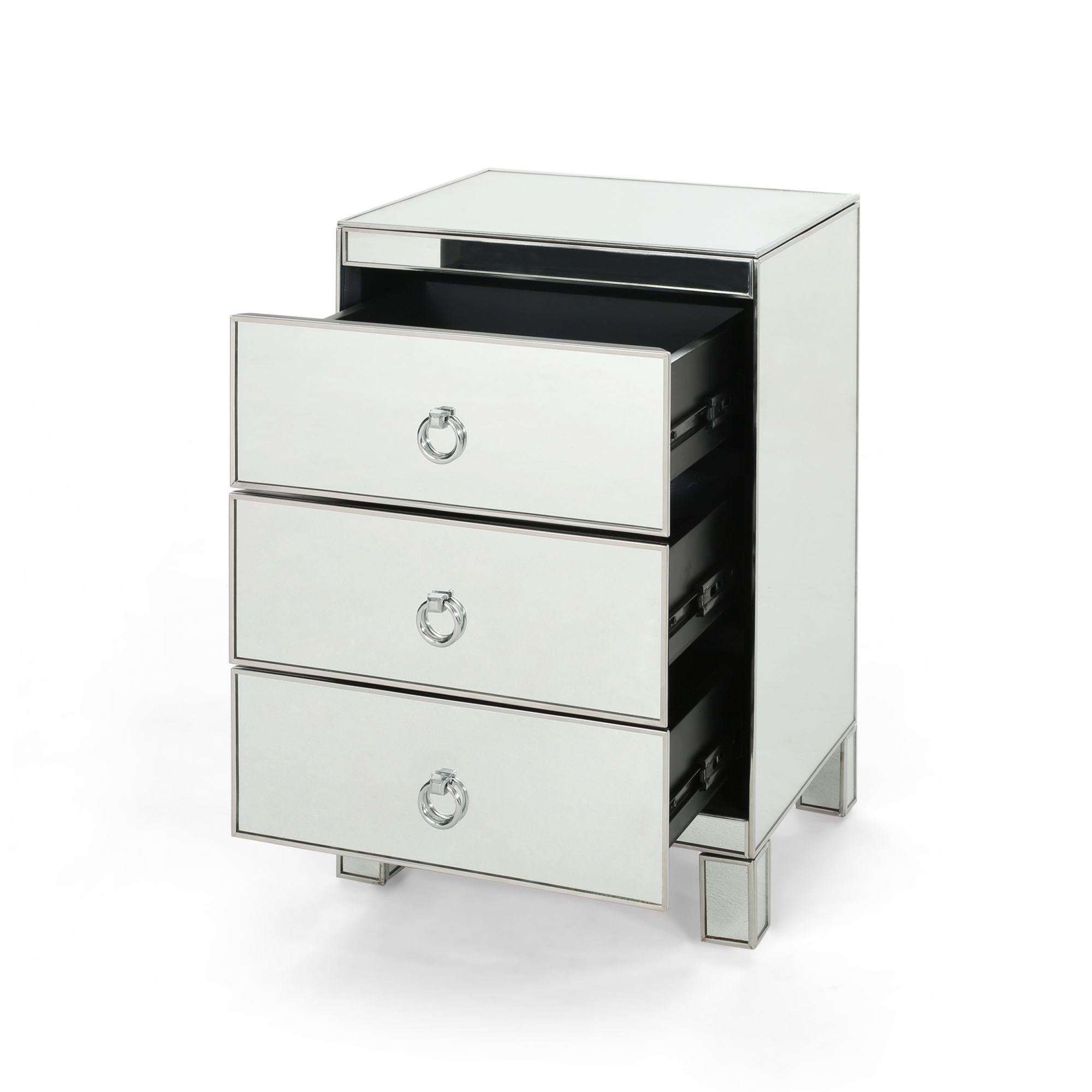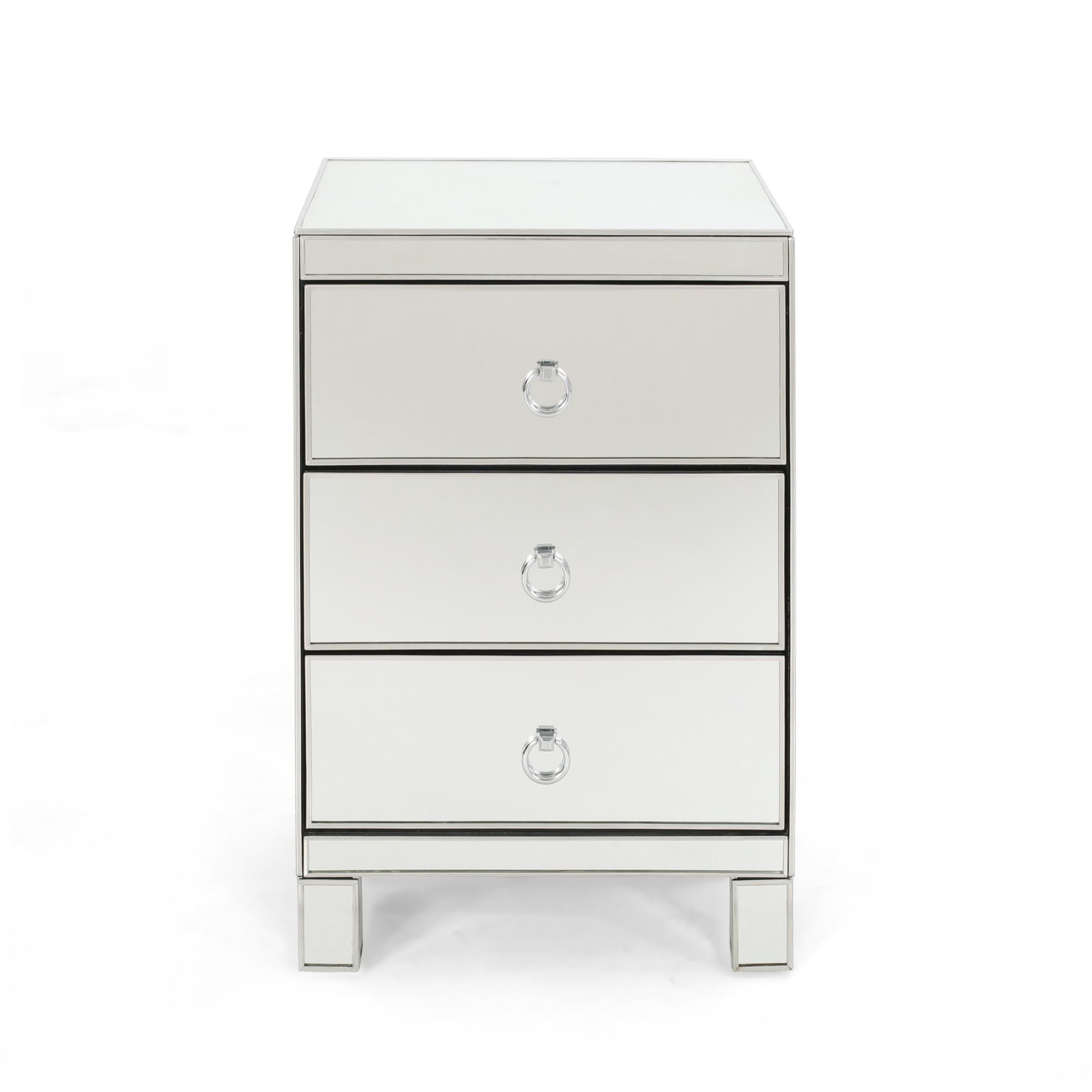 - Elegant Mirrored Design: The 3 Drawer Side Table Mirrored features a stunning mirrored surface that reflects light and adds a touch of elegance to any room. Its sleek and glamorous design instantly enhances the aesthetic appeal of your living space.