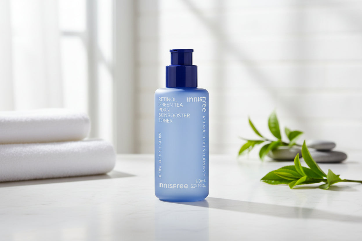 The innisfree Retinol Green Tea PDRN Skin Booster Toner is a professional-grade "skin-reset" solution specifically engineered to provide a sturdy repair system for aging and uneven skin. This "must-have" 170ml toner features a high-capacity blend of Pure Retinol and Green Tea PDRN™, making it a reliable choice for effectively refining skin texture while promoting a radiant, "glass-skin" finish. With its specialized essence-like absorption, it delivers a salon-quality experience that leaves your face feeling organized, smooth, and brilliantly firm.